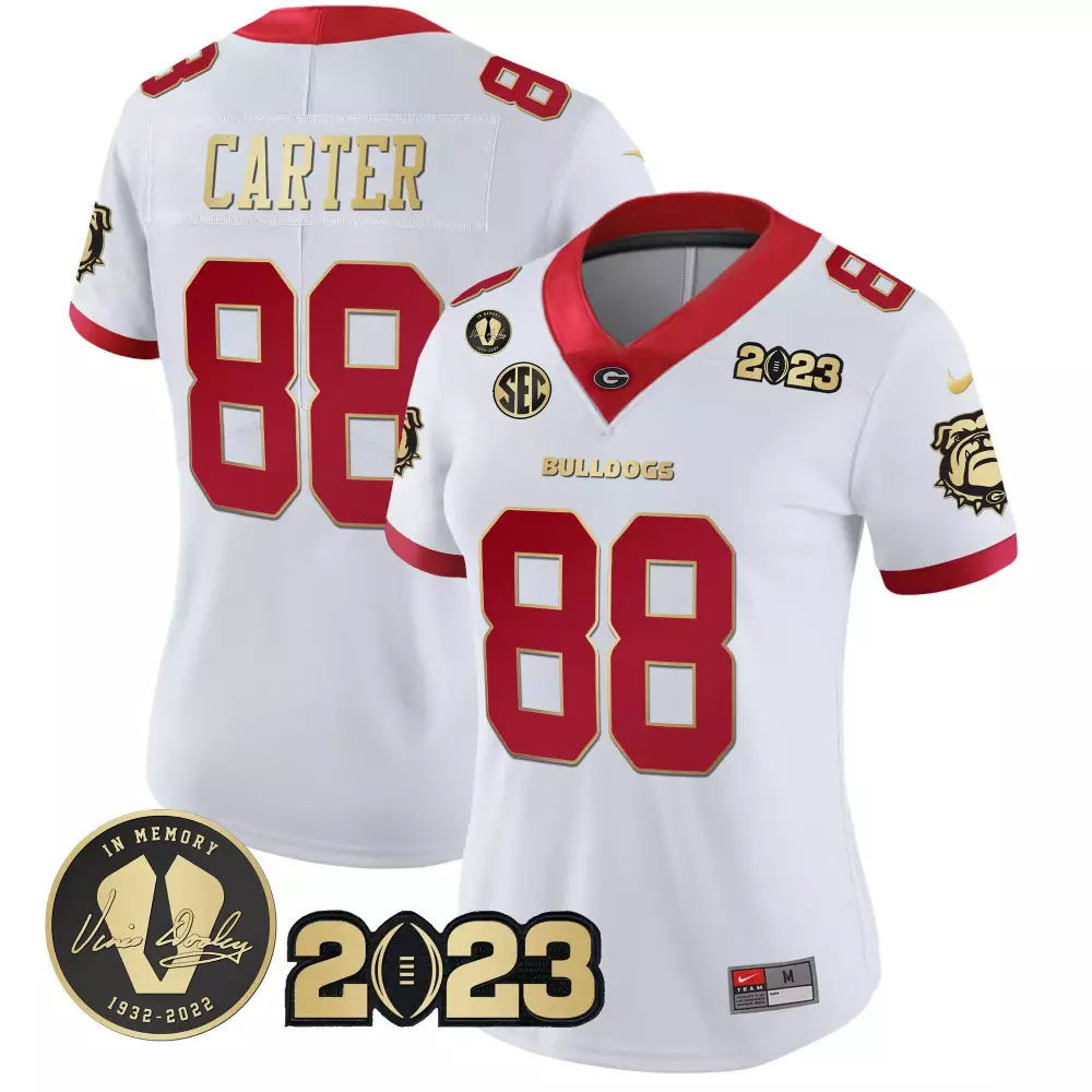 Jalen Carter White Women’s Georgia Bulldogs 2023 Vince Dooley Patch Jersey | All Stitched | Limited Edition Fan Gear | For Men, Women & Youth;Jalen Carter White Youths Georgia Bulldogs 2023 Champions Jersey | All Stitched | Game Day Outfit | For Men, Women & Youth;Jalen Carter White Youths Georgia Bulldogs 2023 Color Sleeves Jersey | All Stitched | Fan Gear for Game Day | For Men, Women & Youth;Jalen Carter Women’s 2023 Champions Gold Jersey | White Gold | Stitched Fan Gear for Game Day | For Men, Women & Youth;Jalen Carter Women’s 2023 Champions Gold Jersey | White Gold Trim | Stitched Fan Gear for Game Day | For Men, Women & Youth