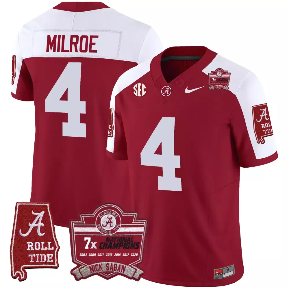 Jalen Milroe Crimson Alternate Men’s Alabama Crimson Tide Gold Trim Vapor Jersey V2 | Stitched Fan Gear | For Men, Women & Youth;Jalen Milroe Crimson Alternate Men’s Alabama Crimson Tide Gold Trim Vapor Jersey V3 | Stitched Fan Gear | For Men, Women & Youth;Jalen Milroe Crimson Alternate Men’s Alabama Crimson Tide Nick Saban 7x Champions Patch Gold Trim Jersey | Stitched Fan Gear | For Men, Women & Youth;Jalen Milroe Crimson Alternate Men’s Alabama Crimson Tide Nick Saban 7x Champions Patch Vapor Jersey | Stitched Fan Gear | For Men, Women & Youth;Jalen Milroe Crimson Alternate Men’s Alabama Crimson Tide Rose Bowl Patch Vapor Jersey | Stitched Fan Gear | For Men, Women & Youth