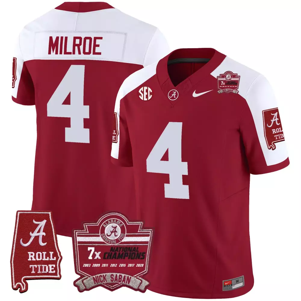 Jalen Milroe Crimson Alternate Women’s Alabama Crimson Tide Gold Trim Vapor Jersey V2 | Stitched Fan Gear | For Men, Women & Youth;Jalen Milroe Crimson Alternate Women’s Alabama Crimson Tide Vapor Limited Jersey V3 | Stitched Fan Gear | For Men, Women & Youth;Jalen Milroe Crimson Alternate Youths Alabama Crimson Tide Gold Trim Vapor Jersey V3 | Stitched Fan Gear | For Men, Women & Youth;Jalen Milroe Crimson Alternate Youths Alabama Crimson Tide Nick Saban 7x Champions Patch Gold Trim Jersey | Stitched Fan Gear | For Men, Women & Youth;Jalen Milroe Crimson Alternate Youths Alabama Crimson Tide Nick Saban 7x Champions Patch Vapor Jersey | Stitched Fan Gear | For Men, Women & Youth