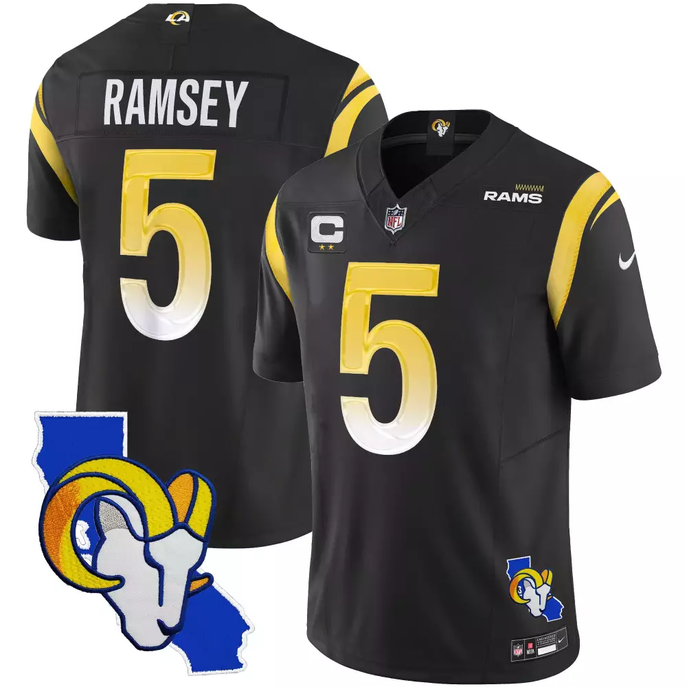 Jalen Ramsey Black Alternate Women’s Rams Mexico Vapor Limited Jersey | Custom Stitched Fan Gear | For Men, Women & Youth;Jalen Ramsey Black Alternate Women’s Rams Vapor Limited Jersey V2 | Custom Stitched Fan Gear | For Men, Women & Youth;Jalen Ramsey Black Limited Women’s 2024 Rams Jersey | Gold Vapor Stitched | Limited Edition Fan Gear | For Men, Women & Youth;Jalen Ramsey Black Men’s 2024 NFC West Champions Rams Jersey | Vapor Stitched | Limited Edition Fan Gear | For Men, Women & Youth;Jalen Ramsey Black Men’s California Patch Rams Jersey | Vapor Stitched | Limited Edition Fan Gear | For Men, Women & Youth