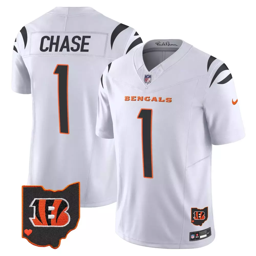Jamarr Chase Cincinnati Bengals White Men’s 55th Anniversary Patch Player Vapor Limited Jersey | All Stitched | Fan Gear for Game Day | For Men, Women & Youth;Jamarr Chase Cincinnati Bengals White Men’s Black Gold White Gold Vapor Jersey | All Stitched | Fan Gear for Game Day | For Men, Women & Youth;Jamarr Chase Cincinnati Bengals White Men’s Ohio Patch Baseball Jersey | All Stitched | Perfect Fan Gear for Game Day | For Men, Women & Youth;Jamarr Chase Cincinnati Bengals White Men’s Ohio Patch Vapor Limited Jersey | All Stitched | Game Day Fan Gear | For Men, Women & Youth;Jamarr Chase Cincinnati Bengals White Men’s Ohio Patch Vapor Limited Jersey V2 | All Stitched | Perfect Fan Gear for Game Day | For Men, Women & Youth