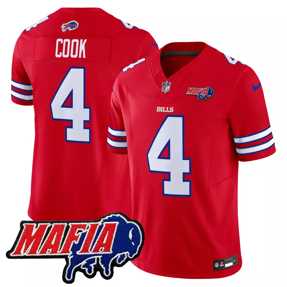 James Cook Red Men’s Buffalo Bills 2024 Mafia Patch Vapor Jersey | Limited Edition Stitched Design | For Men, Women & Youth
