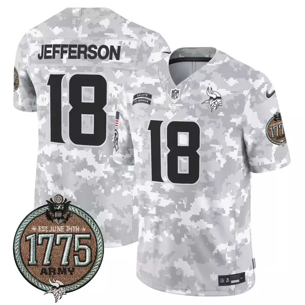 Jared Goff 2024 Salute to Service Army Patch Vapor Jersey | Men’s Stitched Limited Edition Fan Gear | For Men, Women & Youth;Jared Goff 2024 Salute to Service Army Patch Vapor Jersey | Women’s Stitched Limited Edition Fan Gear | For Men, Women & Youth;Justin Jefferson Army 2024 Men’s Stitched Jersey | Salute To Service | Limited Edition | For Men;Justin Jefferson Army 2024 Women’s Stitched Jersey | Salute To Service | Limited Edition | For Women;Limited Edition Army 1 Men’s Black Vapor Jersey | Airborne Patch for 2025 | Stylish Fan Gear | For Men, Women & Youth