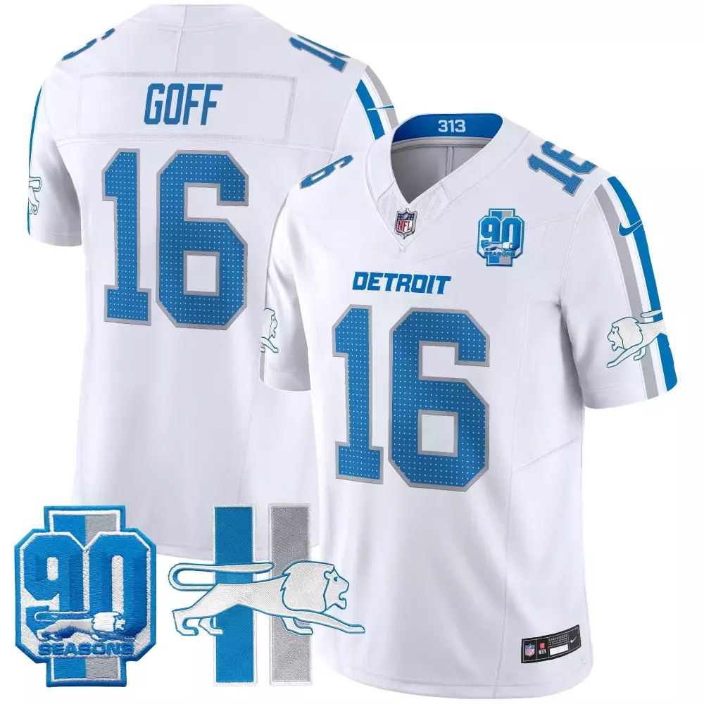 Jared Goff Detroit Lions Throwback 90th Year Patch Vapor Limited Jersey | Blue Stitched | Fan Gear for Men, Women & Youth
