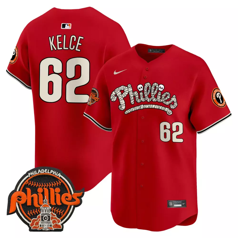 Jason Kelce Dragon Ball Son Goku Phillies Vapor Premier Jersey | Red Printed Limited Edition | Fan Gear for Men, Women & Youth;Jason Kelce Green Phillies Armed Forces Day Jersey | Stitched Vapor Premier Limited Edition | For Men, Women & Youth;Jason Kelce Halloween Phillies Vapor Premier Jersey | Red Stitched Limited Edition | Fan Gear for Men, Women & Youth;Jason Kelce Halloween Phillies Vapor Premier Jersey V2 | Red Stitched Limited Edition | Fan Gear for Men, Women & Youth;Jason Kelce Light Blue Phillies Barbie Patch Jersey | Stitched Vapor Premier Limited Edition | Fan Gear for Men, Women & Youth