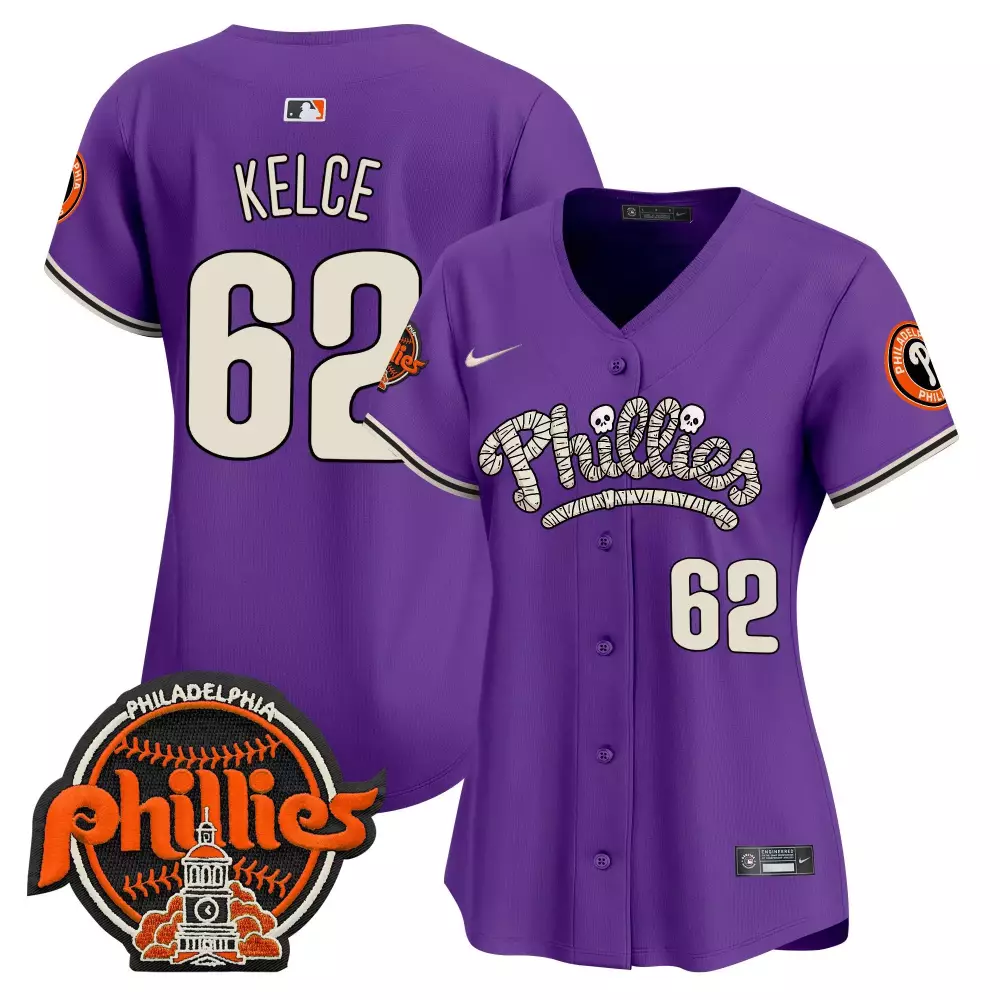 Jason Kelce Purple Women’s Philadelphia Phillies Halloween Vapor Premier Limited Jersey | All Stitched Fan Gear | For Men, Women & Youth;Jason Kelce Purple Women’s Philadelphia Phillies Halloween Vapor Premier Limited Jersey V2 | All Stitched Fan Gear | For Men, Women & Youth;Jason Kelce Red Green Men’s Split Philadelphia Phillies Eagles Cool Base Jersey | All Stitched Fan Gear | For Men, Women & Youth;Jason Kelce Red Women’s Philadelphia Phillies 2024 Fourth of July Vapor Premier Limited Jersey | All Stitched | Fan Gear for Men, Women & Youth;Jason Kelce Red Women’s Philadelphia Phillies 2024 Fourth of July Vapor Premier Limited Jersey V4 | All Stitched | Game Day Outfit for Men, Women & Youth