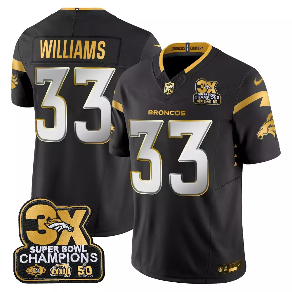 Javonte Williams Black Gold Men’s Denver Broncos Vapor Jersey | Limited Edition Stitched Fan Gear | For Men, Women & Youth;Javonte Williams Denver Broncos 3-Time Champions Patch Jersey | Black | Limited Edition Fan Gear for Men, Women & Youth;Javonte Williams Denver Broncos 3-Time Champions Patch Jersey | Gold | Limited Edition Fan Gear for Men, Women & Youth;Javonte Williams Denver Broncos Gold Vapor Jersey | Limited Edition Stitched Fan Gear for Men, Women & Youth;Javonte Williams Denver Broncos Limited Edition Jersey | Black | All Stitched Fan Gear for Men, Women & Youth