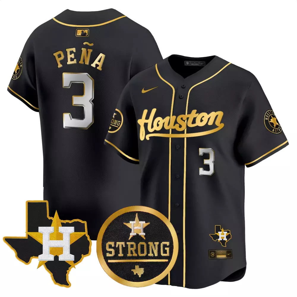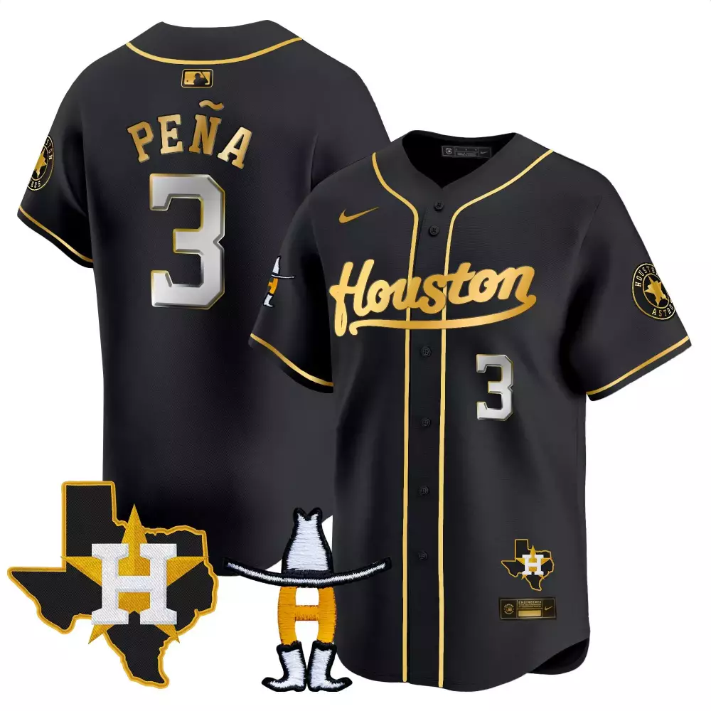 Jeremy Pena Cactus Jack Patch Jersey | Black Gold Vapor Premier | Limited Edition Astros Fan Gear | For Men, Women & Youth;Jeremy Pena Houston Rodeo Patch Jersey | Black Gold Vapor Premier Elite | Limited Edition Astros Fan Gear | For Men, Women & Youth;Jeremy Pena Houston Rodeo Patch Jersey | Black Gold Vapor Premier Limited | Limited Edition Astros Fan Gear | For Men, Women & Youth;Jeremy Pena Houston Rodeo Patch Jersey | Black Gold Vapor Premier Limited V2 | Limited Edition Astros Fan Gear | For Men, Women & Youth;Jeremy Pena Houston Strong Patch Jersey | Black Gold Vapor Premier Limited | Limited Edition Astros Fan Gear | For Men, Women & Youth
