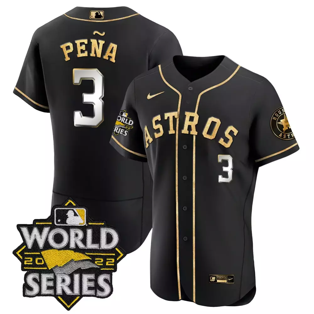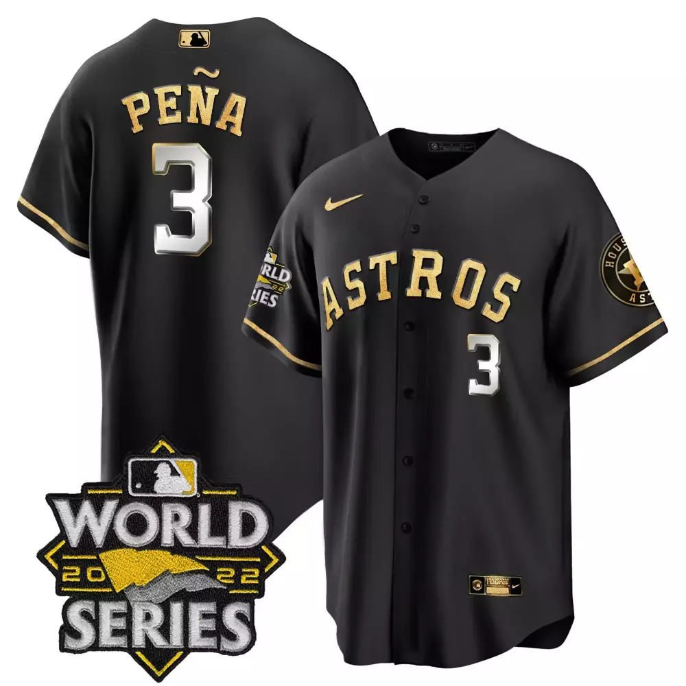 Jeremy Pena Houston Astros 2022 World Series Champions Player Jersey for Women | Cool Black Stitched | Fan Gear for Women & Youth;Jeremy Pena Houston Astros 2022 World Series Champions Stitched Jersey | White Gold Cool Base | Limited Edition Fan Gear | For Men, Women & Youth;Jeremy Pena Houston Astros 2022 World Series Champions Stitched Jersey | White Gold Flex Base | Limited Edition Fan Gear | For Men, Women & Youth;Jeremy Pena Houston Astros 2022 World Series Color Rush Limited Jersey | Cool Black Stitched | Fan Gear for Men, Women & Youth;Jeremy Pena Houston Astros 2022 World Series Color Rush Limited Jersey | Men’s Black Stitched Design | Fan Gear for Game Day | For Men, Women & Youth