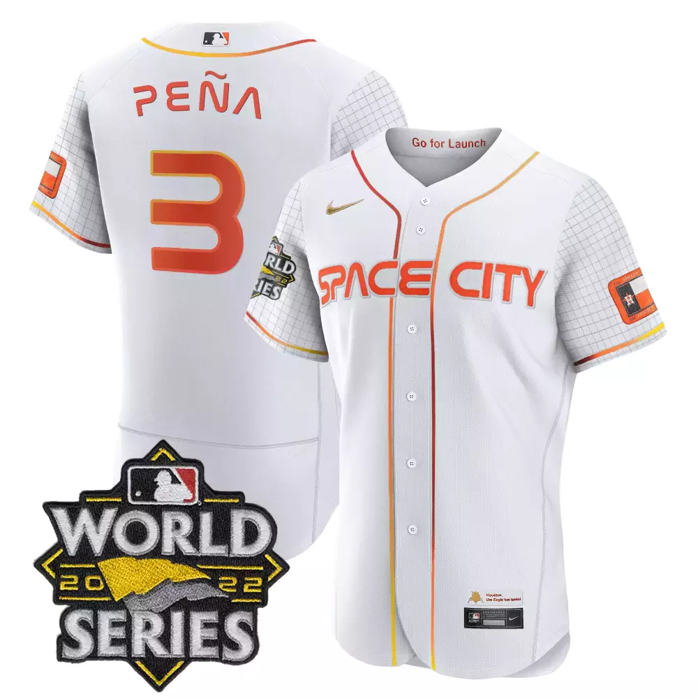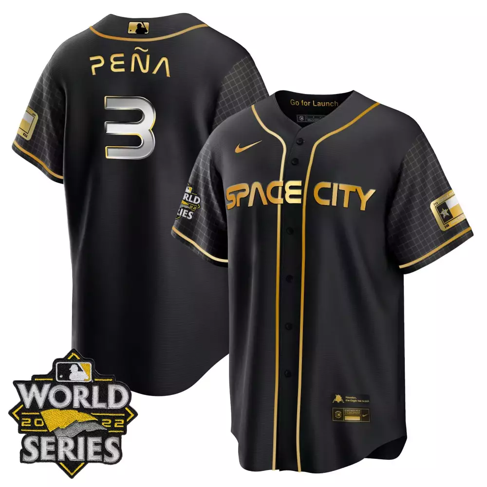 Jeremy Pena Houston Astros Space City Black White Jersey | White Style | All Stitched | For Men, Women & Youth;Jeremy Pena Houston Astros Space City Gold 2022 World Series Jersey | Cool Black Stitched | Fan Gear for Men, Women & Youth;Jeremy Pena Houston Astros Space City Gold 2022 World Series Jersey | Cool Navy Stitched Fan Gear | For Men, Women & Youth;Jeremy Pena Houston Astros Space City Gold 2022 World Series Jersey | Cool Navy Youth Stitched | For Youth;Jeremy Pena Houston Astros Space City Gold 2022 World Series Jersey | Men’s Black Stitched Design | Fan Gear for Game Day | For Men, Women & Youth