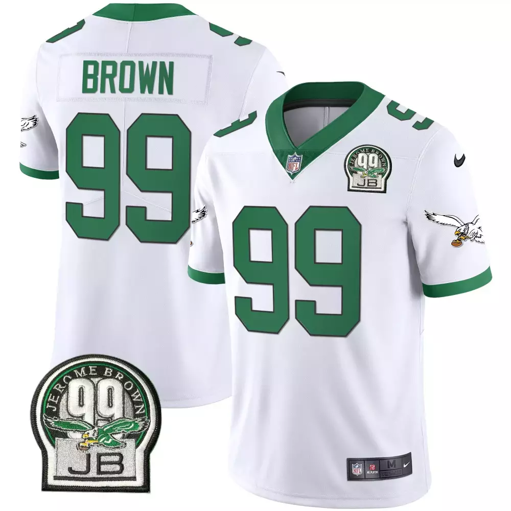 Jerome Brown Kelly White Men’s Philadelphia Eagles Retired Patch Gold Kelly Jersey | All Stitched Fan Gear | For Men