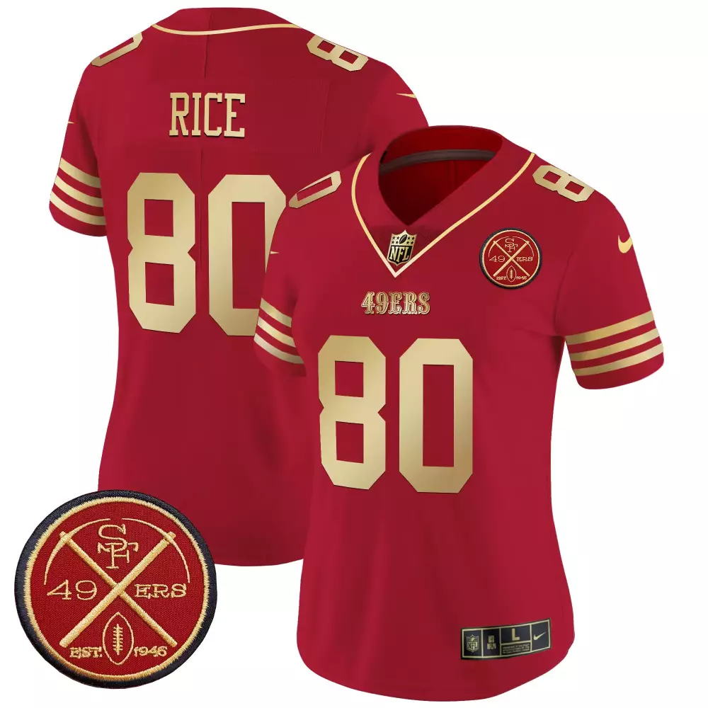 Jerry Rice San Francisco 49ers Scarlet 1990 Legacy Jersey | Classic Fan Gear for Men, Women & Youth | Perfect for Game Day;Jerry Rice San Francisco 49ers Scarlet 1990 Legacy Retired Player Jersey | Timeless Fan Gear for Men, Women & Youth | Ideal for Game Day;Jerry Rice San Francisco 49ers Scarlet Big Tall 1990 Retired Player Jersey | Stylish Fan Gear for Men, Women & Youth | Perfect for Game Day;Jerry Rice San Francisco 49ers Scarlet Gold Big Tall Split Legacy Retired Player Jersey | Trendy Fan Gear for Men, Women & Youth | Ideal for Game Day;Jerry Rice San Francisco 49ers Scarlet Gold Women’s EST1946 Patch Vapor Limited Jersey | All Stitched | Fan Gear for Women