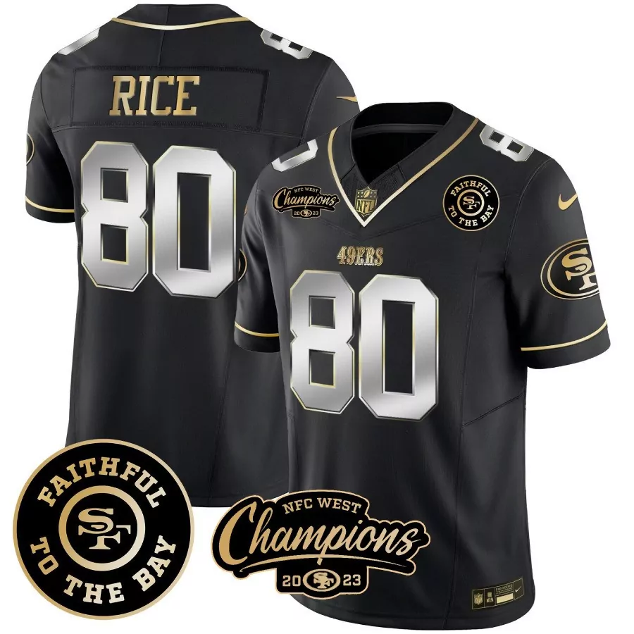 Jerry Rice San Francisco 49ers Vapor Jersey | White | Faithful Super Bowl LVIII Gold Patch | Fan Gear for Men, Women & Youth;Jerry Rice San Francisco 49ers Vapor Jersey | White | Faithful to the Bay Patch | Fan Gear for Men, Women & Youth;Jerry Rice San Francisco 49ers Vapor Limited Jersey | Black and Brown Style | NFC West Champs Fan Gear | For Men, Women & Youth;Jerry Rice San Francisco 49ers Vapor Limited Jersey | Black Style | NFC West Champs Fan Gear | For Men, Women & Youth;Jerry Rice San Francisco 49ers White Legacy Jersey 4YP | Stylish Fan Gear for Men, Women & Youth | Perfect for Game Day