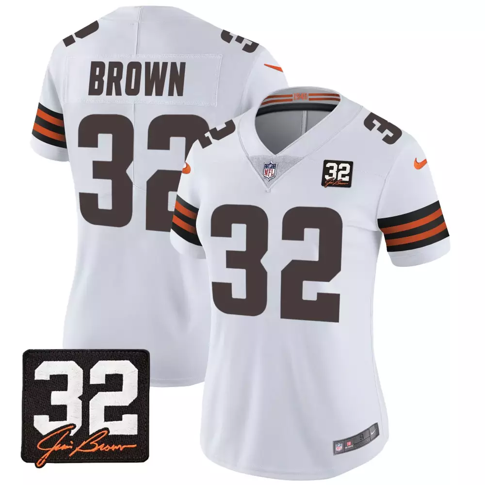 Jim Brown 32 Cleveland Browns Women’s Orange Jersey | Stitched Vapor Edition | Great Gift Idea for Fans | For Men, Women & Youth;Jim Brown 32 Cleveland Browns Women’s Orange Jersey | Stitched Vapor Edition with Home Patch | Great Gift Idea for Fans | For Men, Women & Youth;Jim Brown 32 Cleveland Browns Women’s White Jersey | Stitched Vapor Edition with Memorial Patch | Ideal for Game Day | For Men, Women & Youth;Jim Brown 32 Memorial Home Patch Custom Jersey | Stitched Youth Fan Gear | For Men, Women & Youth;Jim Brown 32 Memorial Home Patch Custom Jersey V2 | Stitched Youth Fan Gear | For Men, Women & Youth
