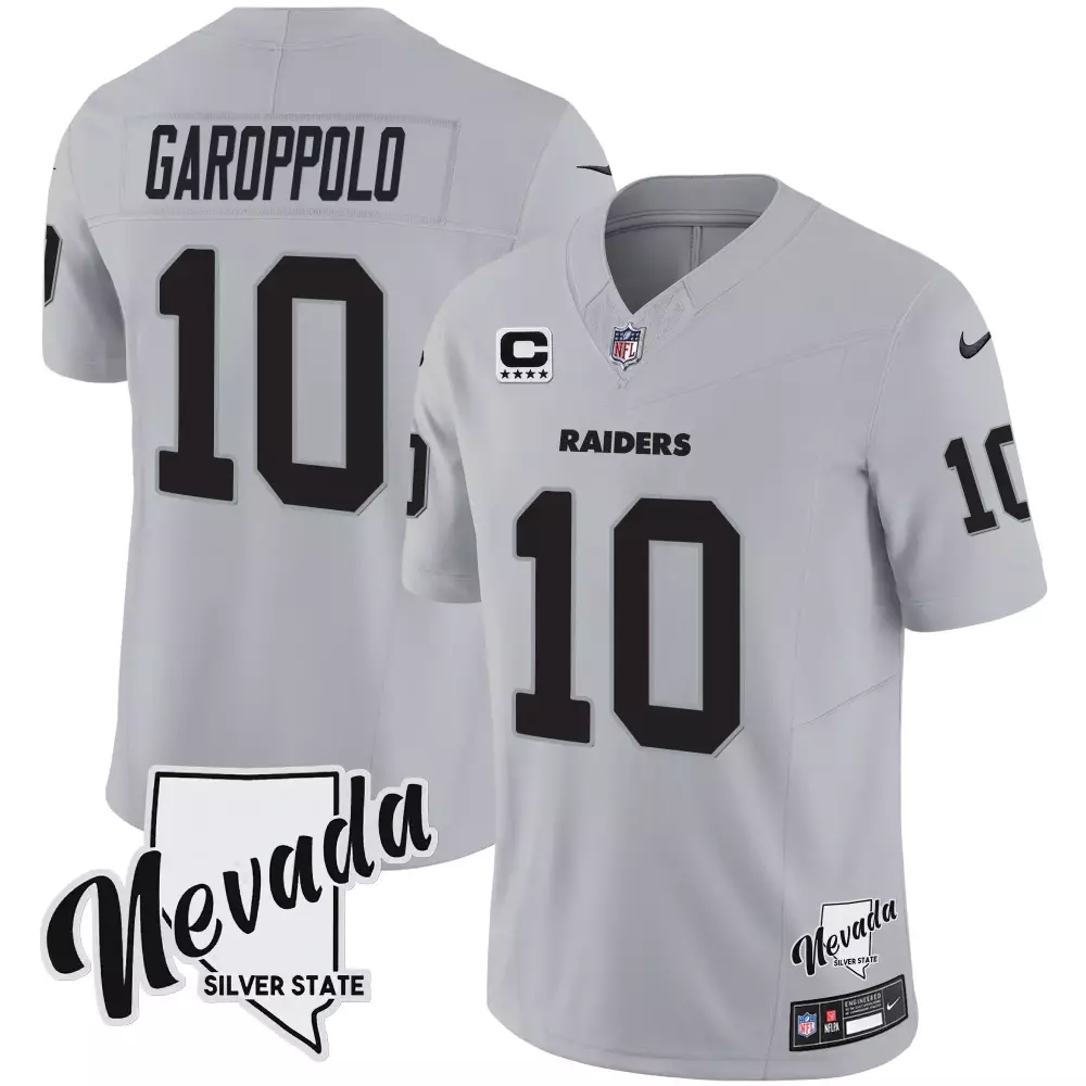 Jimmy Garoppolo Black Gold Women’s Raiders Gold Arch Jersey | Stitched Smoke Vapor Design | Fan Gear for Game Day | For Men, Women & Youth;Jimmy Garoppolo Black Women’s Raiders Arch Smoke Vapor Jersey | Stitched Fan Gear | For Men, Women & Youth;Jimmy Garoppolo Black Women’s Raiders Nevada Home Patch Vapor Jersey | Stitched Fan Gear | For Men, Women & Youth;Jimmy Garoppolo Gray Men’s Raiders Nevada Home Patch Vapor Jersey | Stitched Fan Gear | For Men, Women & Youth;Jimmy Garoppolo Gray Men’s Raiders Nevada Silver State Patch Vapor Jersey | Stitched Fan Gear | For Men, Women & Youth