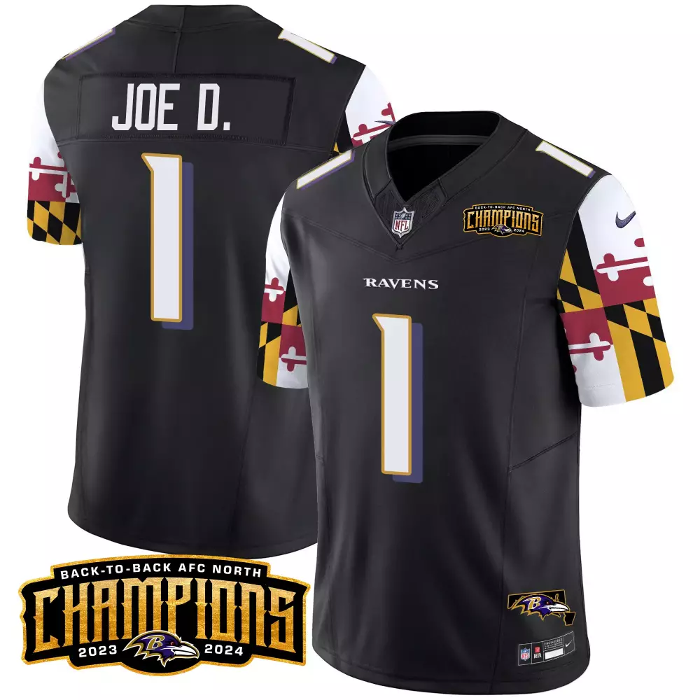 Joe D Black Men’s Baltimore Ravens Maryland Flag Back to Back AFC North Champions Jersey | Vapor Limited Stitched | For Men, Women & Youth;Joe D Black Women’s Baltimore Ravens City Edition Patch Vapor Limited Jersey | Stitched Fan Gear | For Women & Youth;Joe D Black Women’s Baltimore Ravens Maryland Flag 2024 AFC North Champions Patch Vapor Limited Jersey | Stitched Fan Gear | For Women & Youth;Joe D Gold Baltimore Ravens City Edition Patch Vapor Limited Jersey | Stitched Fan Gear | For Men, Women & Youth;Joe D Gold Baltimore Ravens Maryland Flag 2024 AFC North Champions Patch Vapor Limited Jersey | Stitched Fan Gear | For Men, Women & Youth