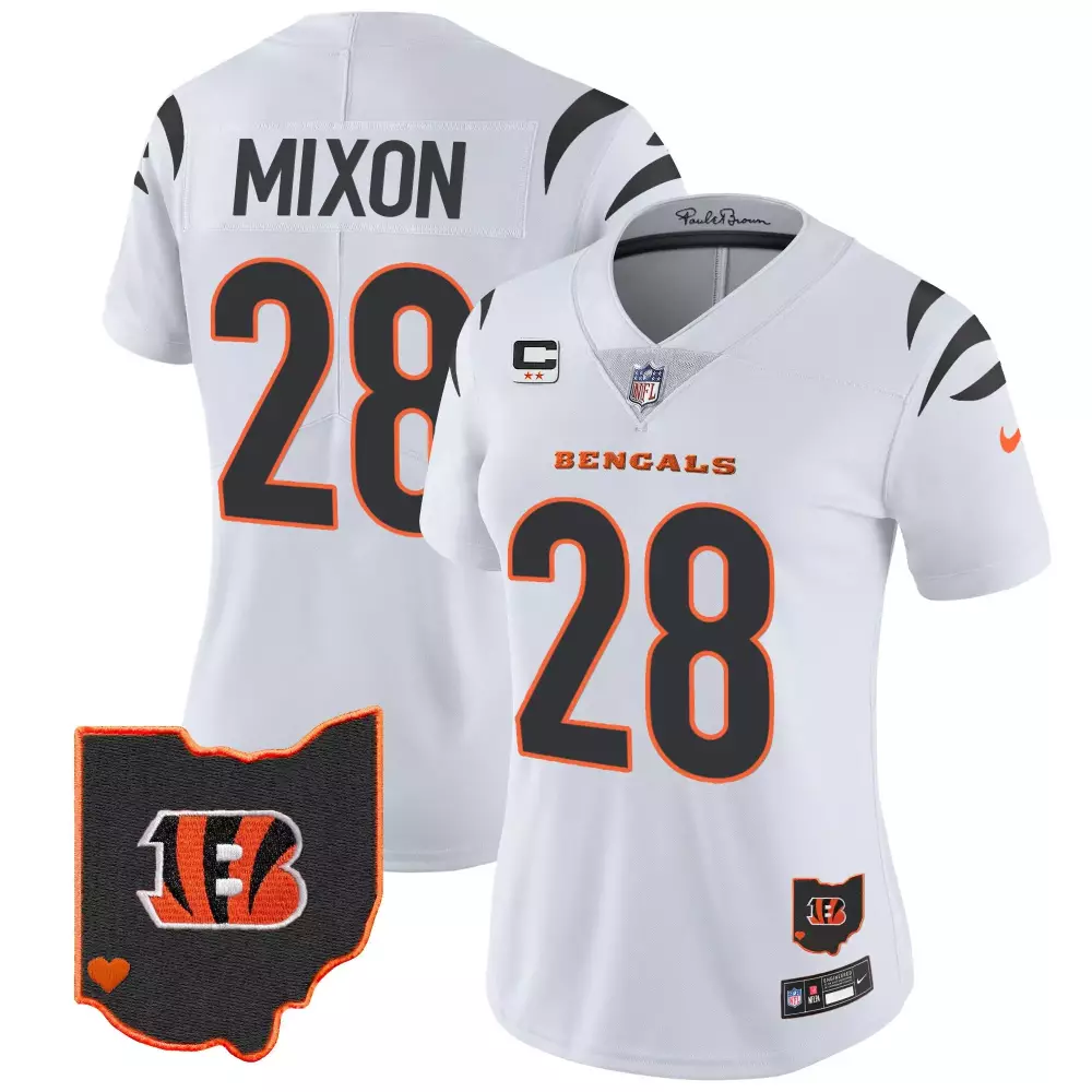Joe Mixon Cincinnati Bengals White Limited Jersey | 2024 Vapor Style | Stitched Fan Gear for Women | Perfect Gift Idea;Joe Mixon Cincinnati Bengals White Limited Jersey | Vapor Premier Style | Stitched Fan Gear for Men, Women & Youth;Joe Mixon Cincinnati Bengals White Ohio Patch Baseball Jersey | Stitched Fan Gear for Men, Women & Youth;Joe Mixon Cincinnati Bengals White Ohio Patch Vapor Limited Jersey | Stitched Fan Gear for Men, Women & Youth;Joe Mixon Cincinnati Bengals White Ohio Patch Vapor Limited Jersey | Stitched Fan Gear for Women
