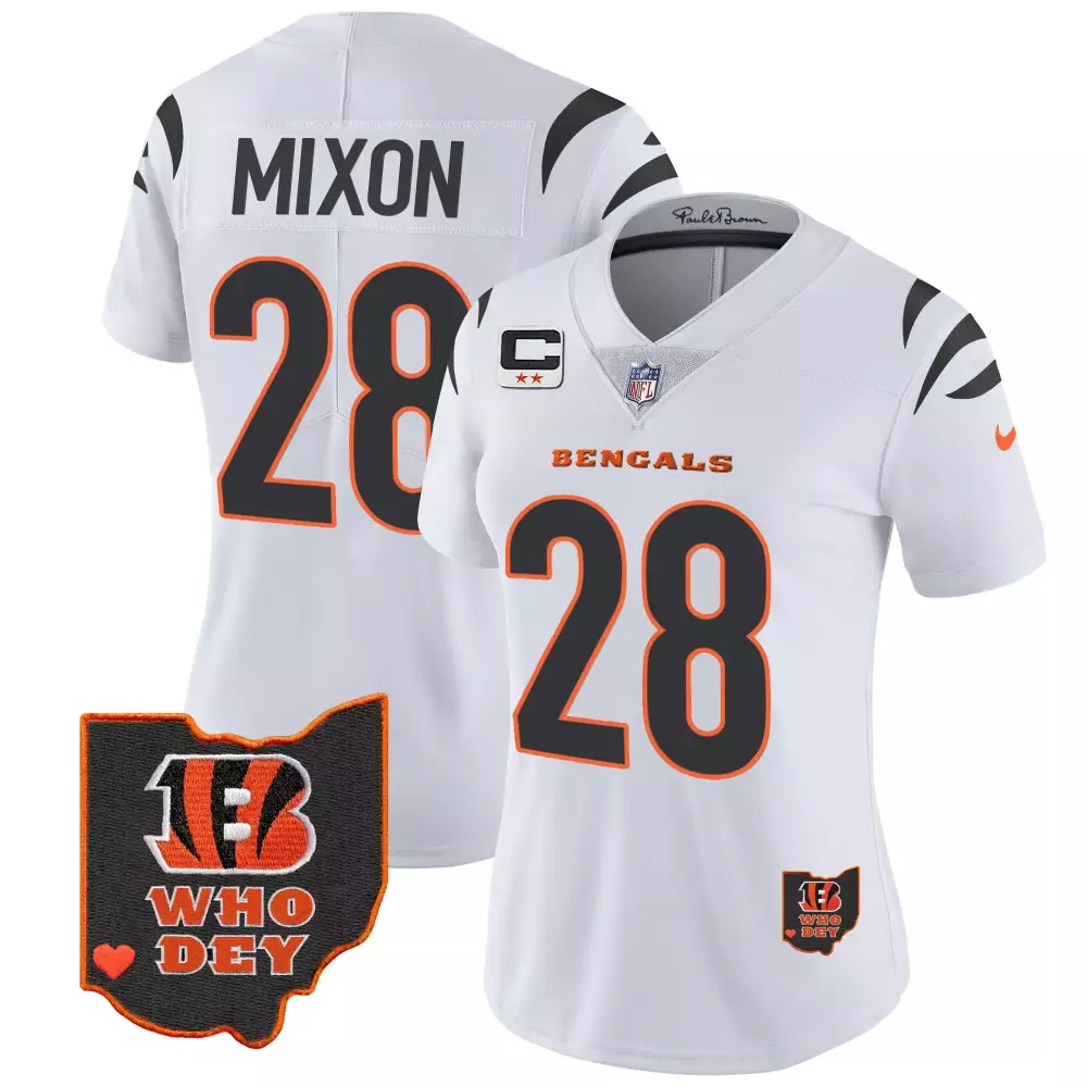 Joe Mixon Cincinnati Bengals White Ohio Patch Vapor Limited Jersey V2 | Stitched Fan Gear for Men, Women & Youth;Joe Mixon Cincinnati Bengals White Ohio Patch Vapor Limited Jersey V2 | Stitched Fan Gear for Women;Joe Mixon Cincinnati Bengals White Player Vapor Limited Jersey | Stitched Fan Gear for Men, Women & Youth;Joe Mixon Cincinnati Bengals White Player Vapor Limited Jersey | Stitched Fan Gear for Women;Joe Mixon Cincinnati Bengals White Regular Vapor Jersey | Stitched Fan Gear for Men, Women & Youth