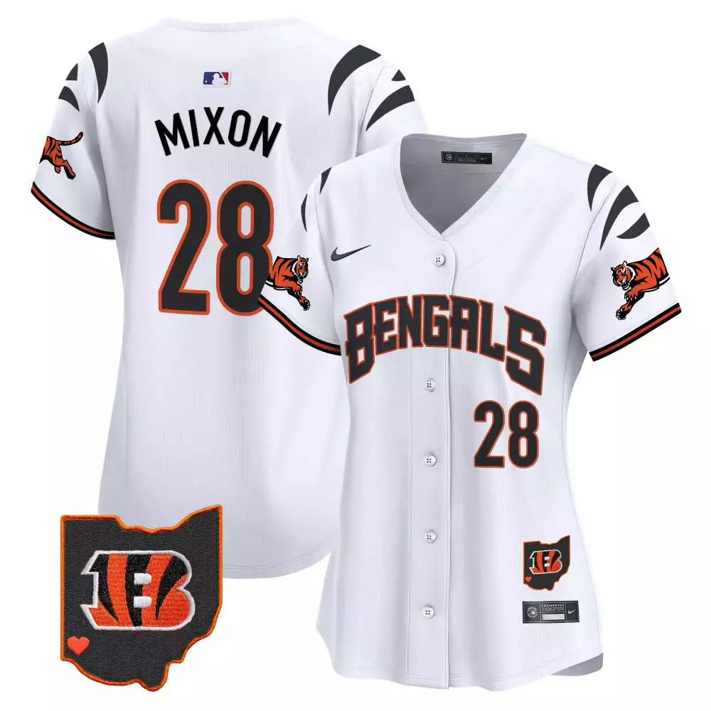 Joe Mixon Cincinnati Bengals White Vapor Premier Limited Jersey | Stitched Fan Gear for Men, Women & Youth;Joe Mixon Cincinnati Bengals White Vapor Premier Limited Jersey | Stitched Fan Gear for Women;Joe Mixon Cincinnati Bengals White Vapor Premier Limited Jersey | Stitched Fan Gear for Women | Game Day Outfit;Joe Mixon Cincinnati Bengals White Youth Player Vapor Limited Jersey | Stitched Fan Gear for Young Fans;Jordan Battle Cincinnati Bengals Black Nike Team Game Jersey | Stitched Fan Gear for Men, Women & Youth