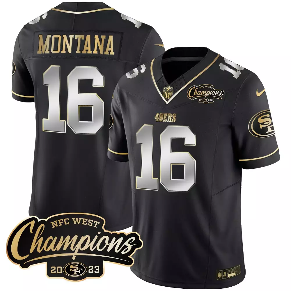 Joe Montana San Francisco 49ers 2022 Stitched Vapor Jersey | Red Green Design | Fan Gear for Men, Women & Youth;Joe Montana San Francisco 49ers 2023 Camo Stitched Vapor Jersey | Men’s Fan Gear | Perfect for Game Day | For Men, Women & Youth;Joe Montana San Francisco 49ers 2023 Green Stitched Jersey | Men’s Style with Name Patch | Game Day Outfit | For Men, Women & Youth;Joe Montana San Francisco 49ers 2023 NFC West Champions Limited Jersey | Alternate Style | Fan Gear for Men, Women & Youth;Joe Montana San Francisco 49ers 2023 NFC West Champions Limited Jersey | Black Style | Fan Gear for Men, Women & Youth