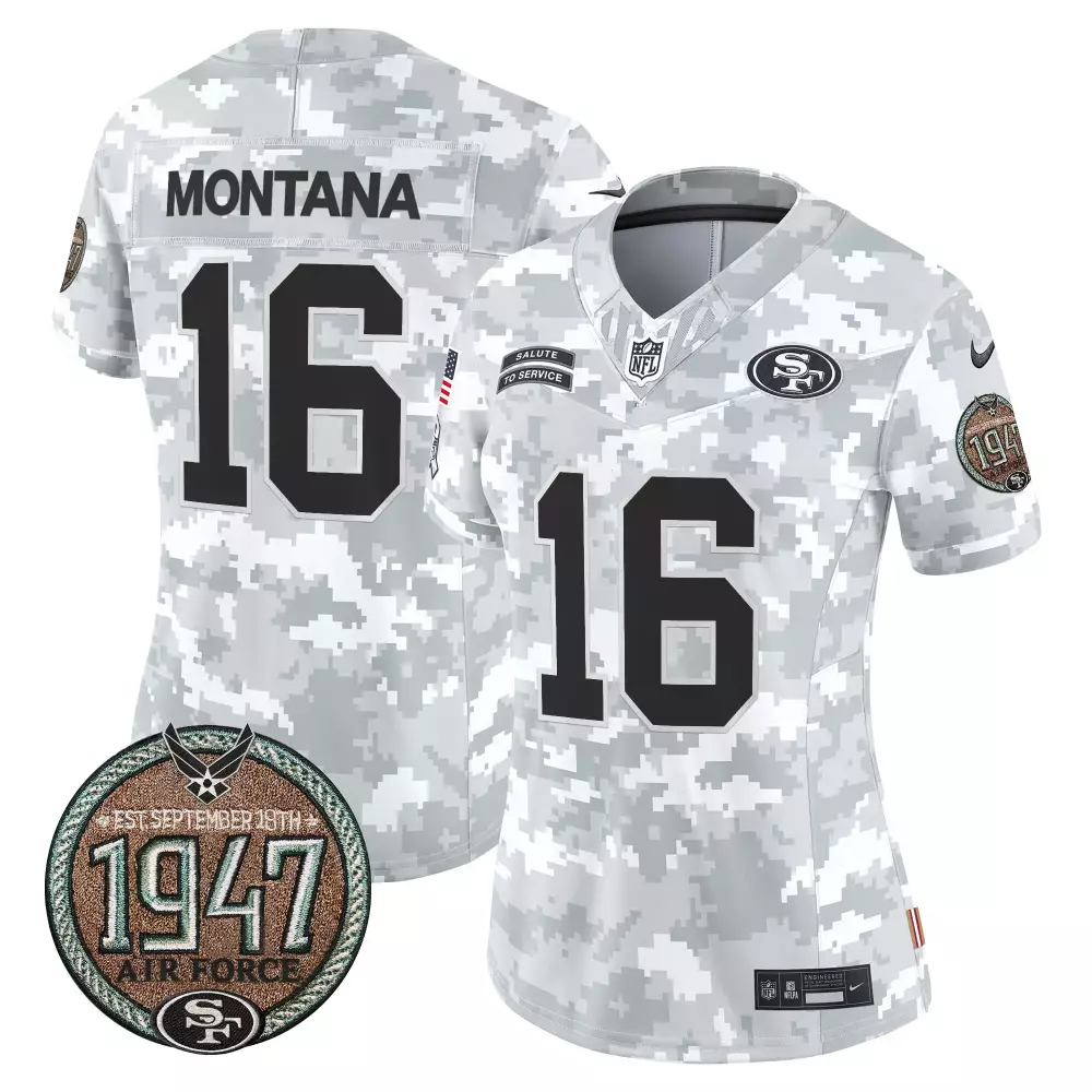 Joe Montana San Francisco 49ers 2024 Salute to Service Jersey | Women’s Army Edition with Establishment Year Patch | For Men, Women & Youth;Joe Montana San Francisco 49ers 2024 Salute to Service Jersey | Women’s Limited Edition with Establishment Year Patch | For Men, Women & Youth;Joe Montana San Francisco 49ers 2024 Winter Warrior Vapor Limited Jersey | Stitched Fan Gear | For Men, Women & Youth;Joe Montana San Francisco 49ers 2024 Women’s Alternate Jersey | Est1946 Patch Vapor Limited Edition | For Men, Women & Youth;Joe Montana San Francisco 49ers 2024 Women’s Alternate Jersey | Est1946 Patch Vapor Limited Edition V2 | For Men, Women & Youth