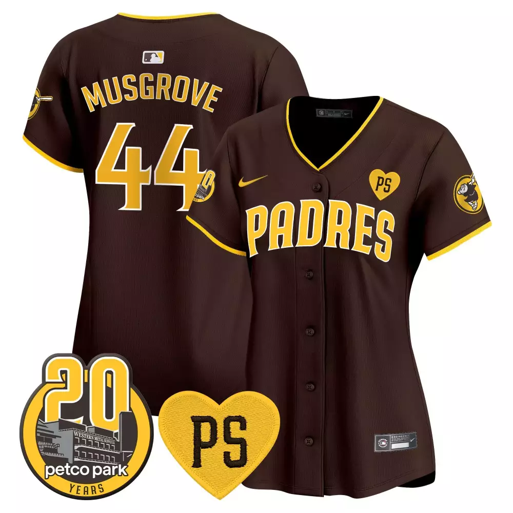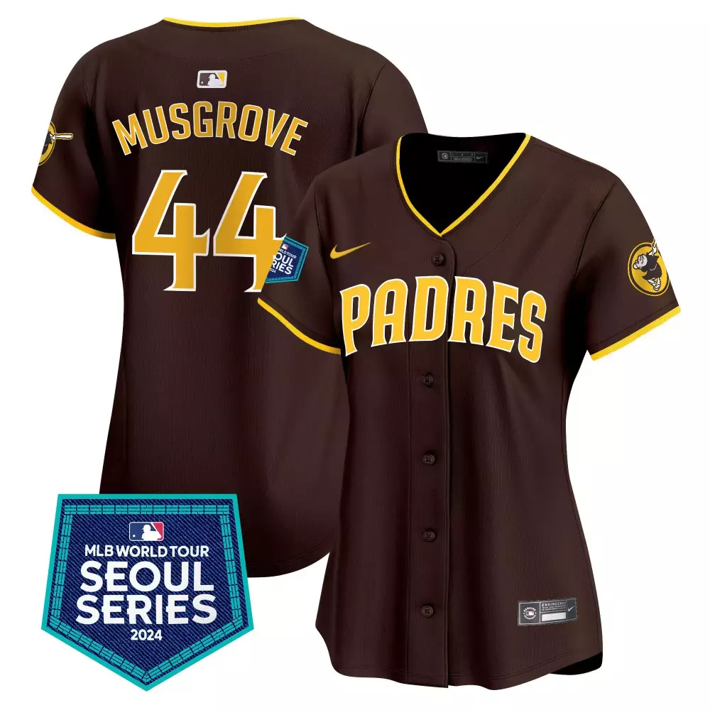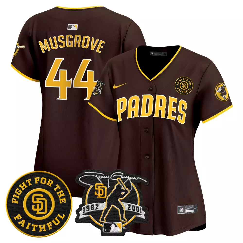 Joe Musgrove Brown Women’s Padres 2024 Tony Gwynn Robinson Patch Limited Edition Jersey | Stitched Vapor Premier | Fan Gear for Men, Women & Youth;Joe Musgrove Brown Women’s Padres 2024 World Tour Seoul Series Patch Limited Edition Jersey | Stitched Vapor Premier | Fan Gear for Men, Women & Youth;Joe Musgrove Brown Women’s Padres Armed Forces Day Limited Edition Jersey | Stitched Vapor Premier | Fan Gear for Men, Women & Youth;Joe Musgrove Brown Women’s Padres Petco Park 20th Patch Limited Edition Jersey | Stitched Vapor Premier | Fan Gear for Men, Women & Youth;Joe Musgrove Brown Women’s Padres Tony Gwynn Faithful Patch Limited Edition Jersey | Stitched Vapor Premier | Fan Gear for Men, Women & Youth