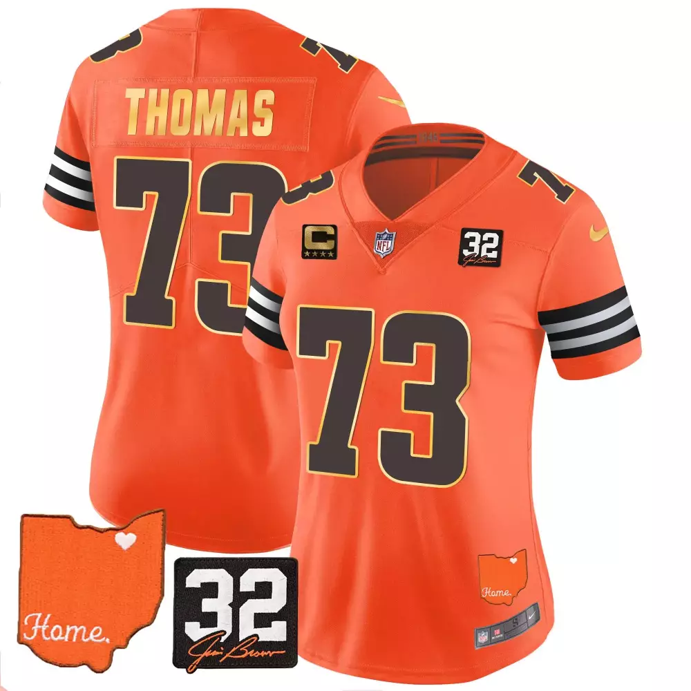 Joe Thomas Cleveland Browns 32 Jim Brown Memorial Home Orange Women’s Jersey | Stitched Fan Gear | For Women & Youth