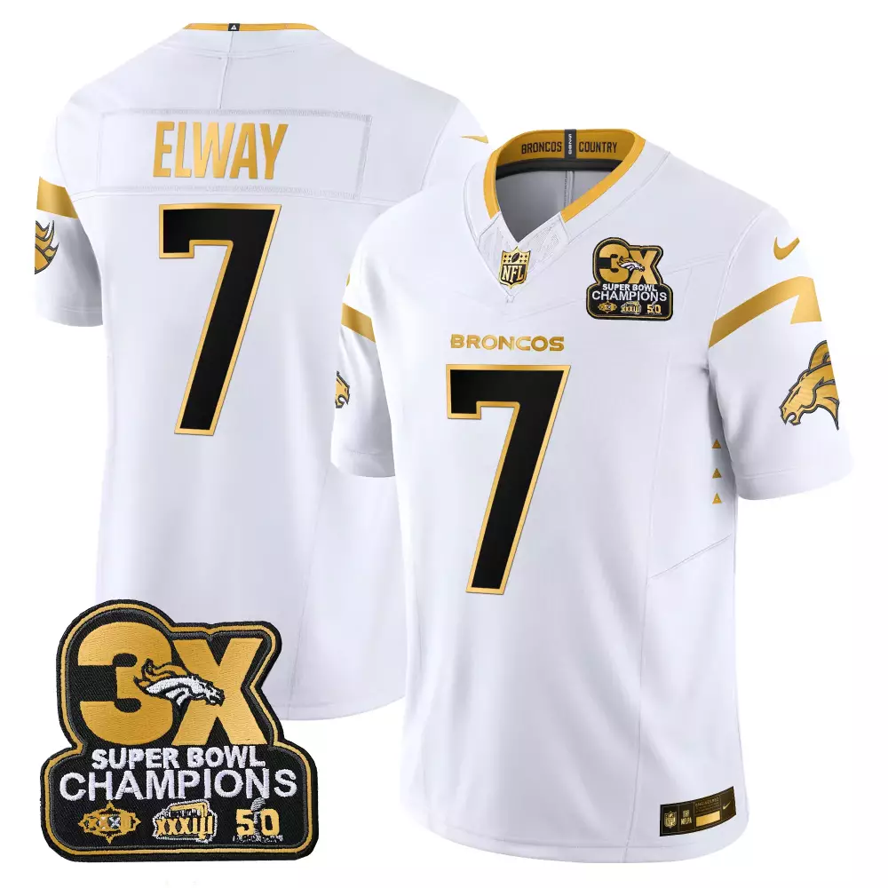 John Elway Denver Broncos White Gold 3-Time Champions Limited Edition Jersey | Stitched Vapor Style | For Men, Women & Youth;John Elway Denver Broncos White Limited Edition Jersey | Stitched Vapor Style | For Men, Women & Youth;John Elway Denver Broncos White Men’s 3-Time Champions Game Jersey | Stitched Style | For Men, Women & Youth;John Elway Denver Broncos White Throwback Limited Edition Jersey V2 | Stitched Vapor Style | For Men, Women & Youth;John Elway Denver Broncos White Women’s 3-Time Champions Limited Edition Jersey | Stitched Vapor Style | For Women, Men & Youth