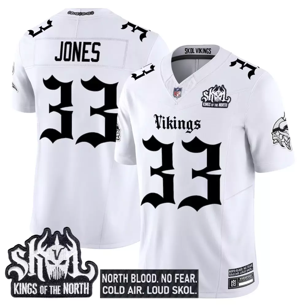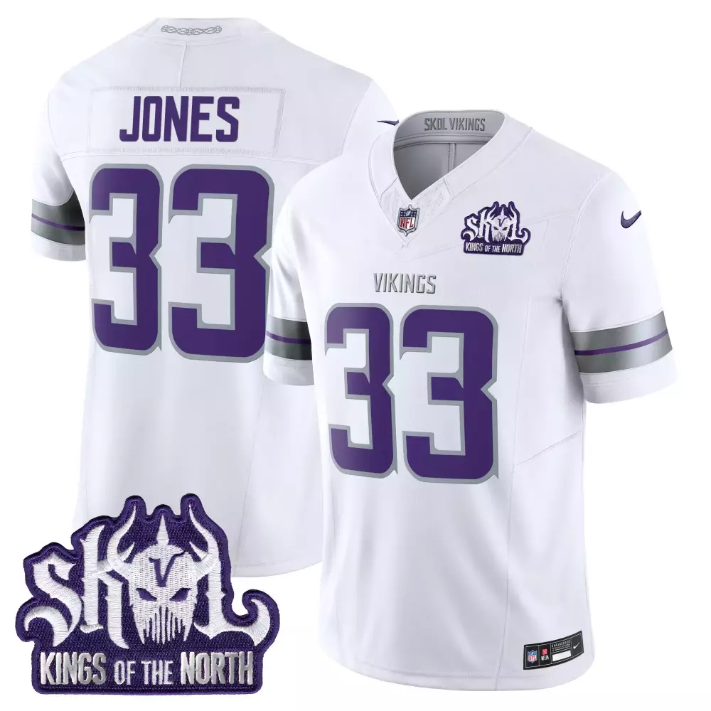 Jones 33 Minnesota Vikings Vapor Stitched Jersey | Black Skol Kings of the North 2023 Edition for Men, Women & Youth;Jones 33 Minnesota Vikings White Stitched Jersey | Skol Patch 2025 | Limited Edition Fan Gear for Men, Women & Youth;Jones 33 Minnesota Vikings White Stitched Vapor Jersey | Skol Patch 2025 | Game Day Outfit for Men, Women & Youth;Jones 33 Minnesota Vikings White Vapor Jersey | Skol Kings of the North Edition 2023 | Game Day Outfit for Women;Jones 33 Minnesota Vikings White Vapor Jersey | Skol Kings of the North Patch 2025 | Replica Fan Gear for Men, Women & Youth