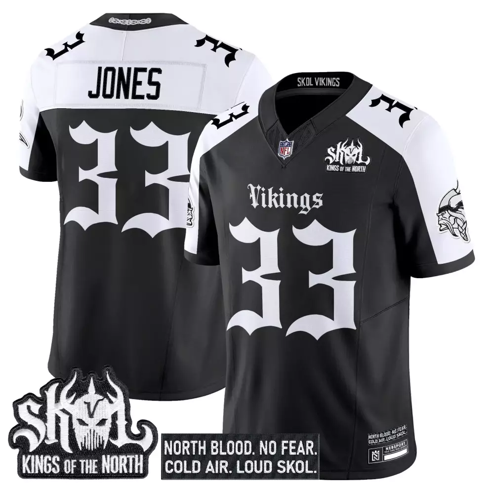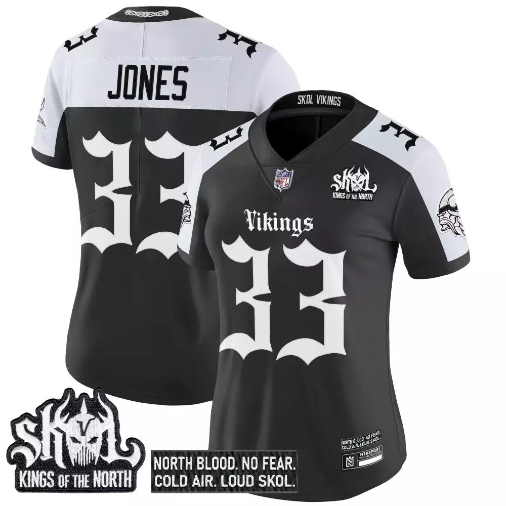 Jones 33 Minnesota Vikings Women’s Black Stitched Jersey | Kings of the North 2023 | Game Day Outfit for Women;Jones 33 Minnesota Vikings Women’s Black Stitched Jersey | Name Patch 2023 Edition | Limited Edition Fan Gear for Women;Jones 33 Minnesota Vikings Women’s Stitched Black Jersey | Skol Kings of the North Edition 2023 | Gift Idea for Women;Jones 33 Minnesota Vikings Women’s Stitched Jersey | White Name Patch 2023 | Game Day Outfit for Women;Jones 33 Minnesota Vikings Women’s White Stitched Jersey | Skol Patch 2023 Edition | Fan Gear for Women