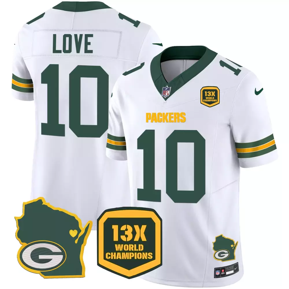 Jordan Love Green Bay Packers 13x Champions Home Patch Vapor Jersey | All Stitched | Limited Edition Fan Gear | For Men, Women & Youth