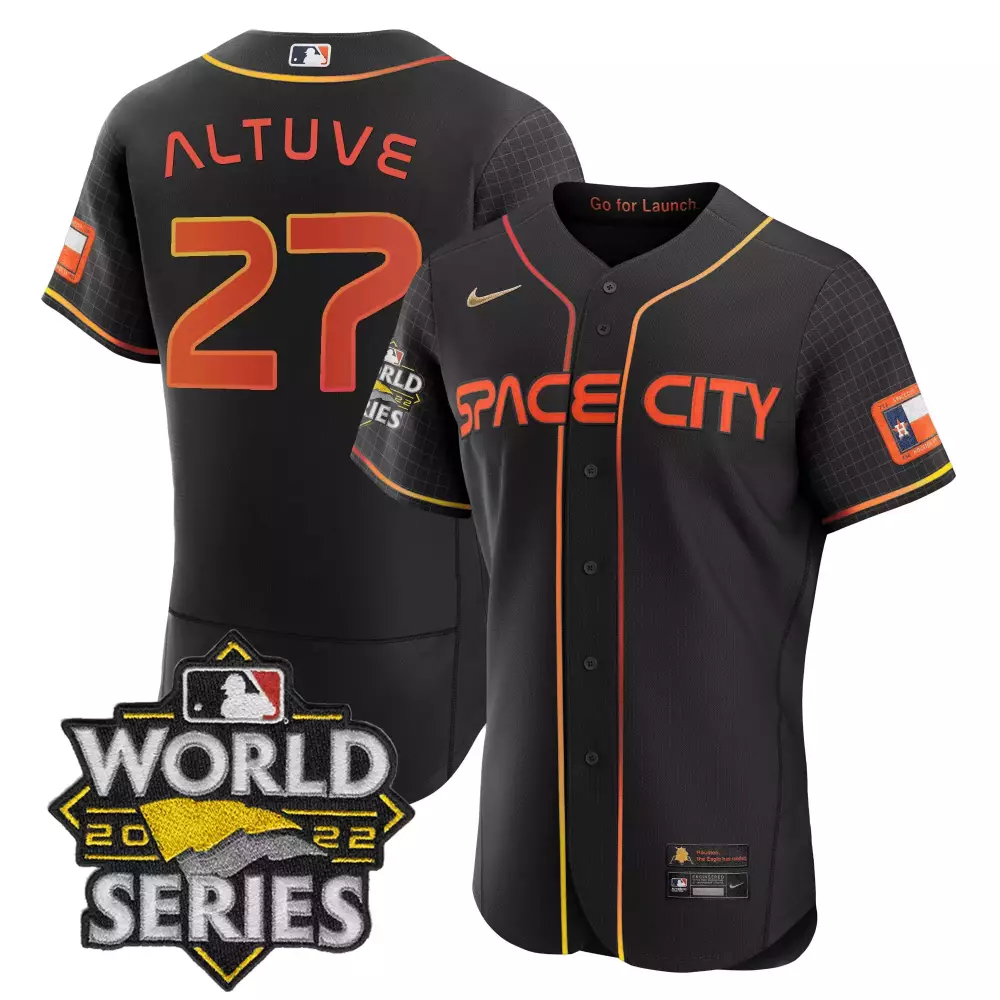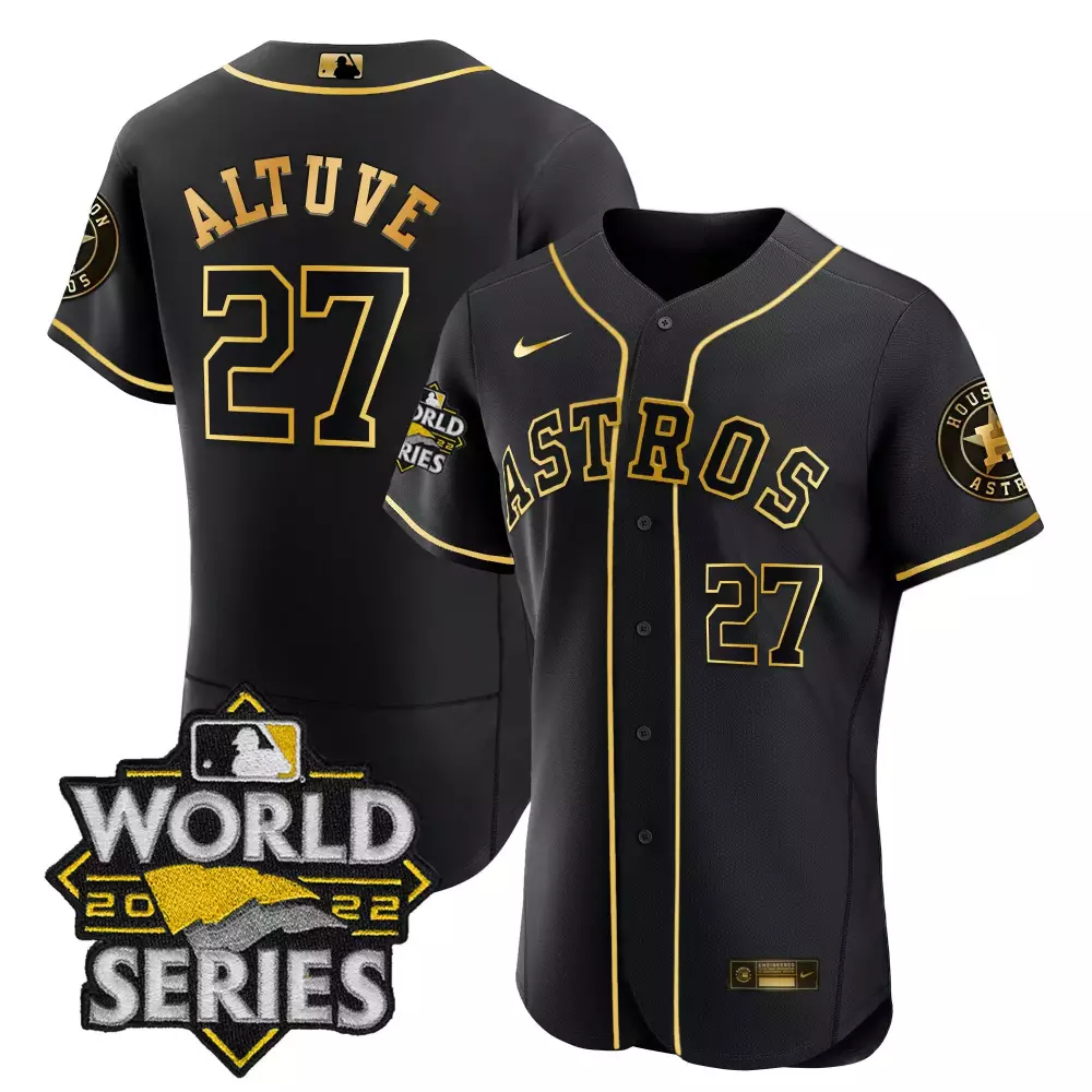 Jose Altuve 27 Houston Astros 2022 Stitched Vapor Jersey | Black | World Series Edition | For Men, Women & Youth