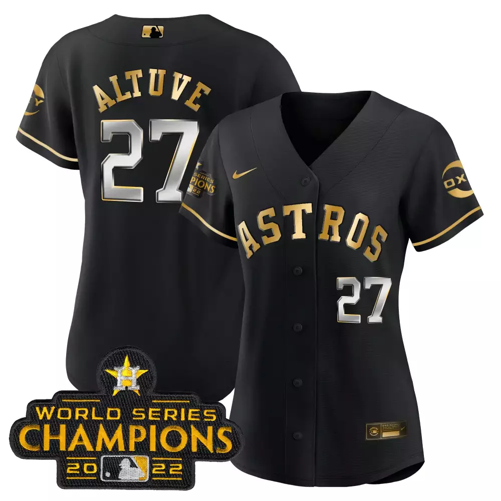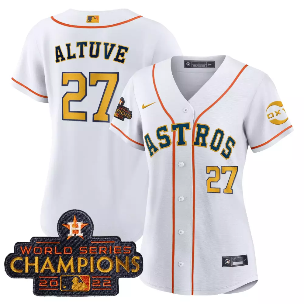 Jose Altuve Houston Astros White Home Player Jersey | Perfect for All Fans | For Men, Women & Youth;Jose Altuve Houston Astros White Home Player Jersey | Stylish Fan Gear for All | For Men, Women & Youth;Jose Altuve Houston Astros Women’s 2022 Champions Black Gold Rush Cool Base Jersey | All Stitched | Fan Gear for Men, Women & Youth;Jose Altuve Houston Astros Women’s 2022 Champions Black Gold Rush Flex Base Jersey | All Stitched | Fan Gear for Men, Women & Youth;Jose Altuve Houston Astros Women’s 2022 Champions Gold Rush Oxy Patch Cool Base Jersey | All Stitched | Fan Gear for Men, Women & Youth