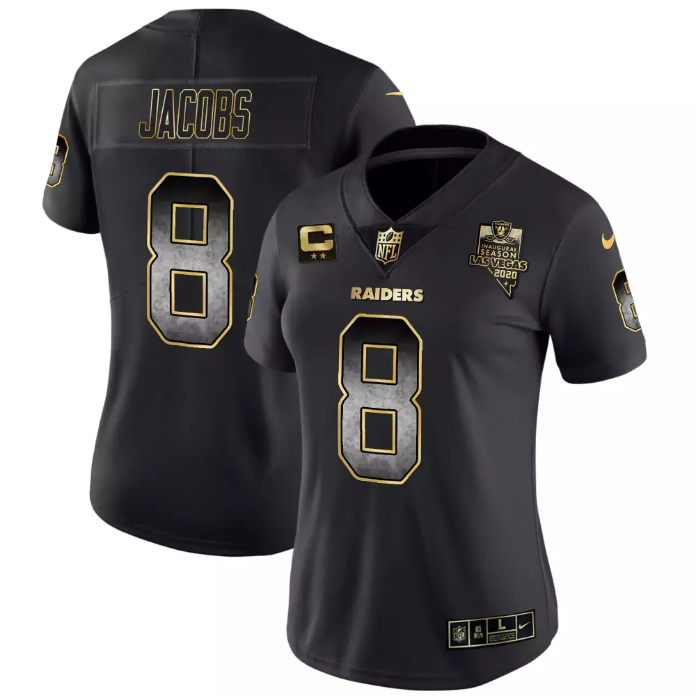 Josh Jacobs Black Gold Men’s Raiders Inaugural Season Jersey | Stitched Limited Edition Design | Fan Gear for Game Day | For Men, Women & Youth;Josh Jacobs Black Gold Men’s Raiders Raider4Life Jersey | Stitched White Gold Design | Limited Edition Fan Gear | For Men, Women & Youth;Josh Jacobs Black Gold Women’s Raiders 60th Season Jersey | Stitched Gold Split Design | Limited Edition Fan Gear | For Men, Women & Youth;Josh Jacobs Black Gold Women’s Raiders Gold Arch Jersey | Stitched Smoke Vapor Design | Fan Gear for Game Day | For Men, Women & Youth;Josh Jacobs Black Gold Women’s Raiders Inaugural Season Jersey | Stitched Gold Split Design | Limited Edition Fan Gear | For Men, Women & Youth