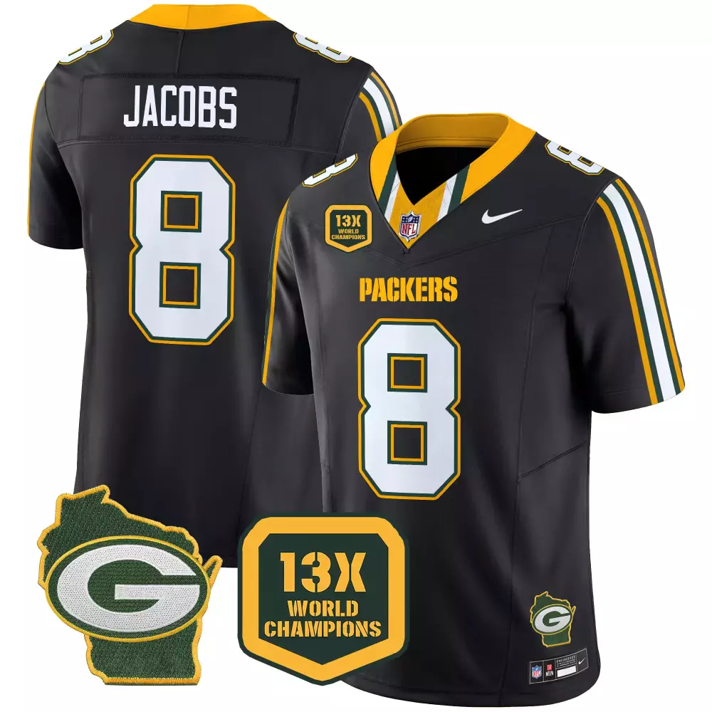 Josh Jacobs Black Limited John Madden Home Patch Gold Vapor Limited Jersey | Women’s Green Bay Packers Fan Gear | For Women & Youth;Josh Jacobs Black Men’s 100th Season Home Patch Cheese Vapor Limited Jersey | Green Bay Packers Fan Gear | For Men, Women & Youth;Josh Jacobs Black Men’s 100th Season Home Patch Vapor Limited Jersey | Green Bay Packers Fan Gear | For Men, Women & Youth;Josh Jacobs Black Men’s 13-Time World Champions Home Patch Vapor Limited Jersey | Green Bay Packers Fan Gear | For Men, Women & Youth;Josh Jacobs Black Men’s Cheese Vapor Limited Jersey | Green Bay Packers Fan Gear | For Men, Women & Youth