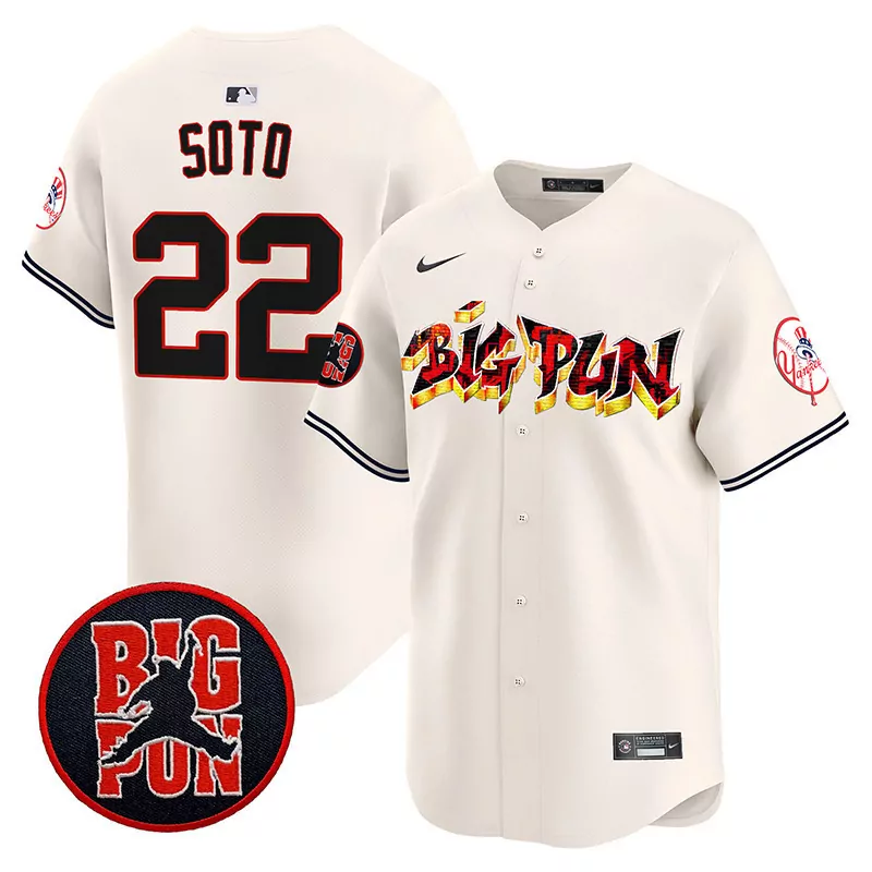 Juan Soto Blue Yankees Bronx Graffiti Vapor Premier Jersey | Stitched Limited Edition | Fan Gear for Men, Women & Youth;Juan Soto Brown Yankees Armed Forces Day Vapor Premier Jersey | Stitched Limited Edition | Fan Gear for Men, Women & Youth;Juan Soto Cream Yankees 1999 Throwback Joe DiMaggio Patch Vapor Premier Jersey | Stitched Limited Edition | Fan Gear for Men, Women & Youth;Juan Soto Cream Yankees Big Pun Vapor Premier Jersey | Stitched Limited Edition | Fan Gear for Men, Women & Youth;Juan Soto Cream Yankees Big Pun Vapor Premier Jersey V2 | Stitched Limited Edition | Fan Gear for Men, Women & Youth