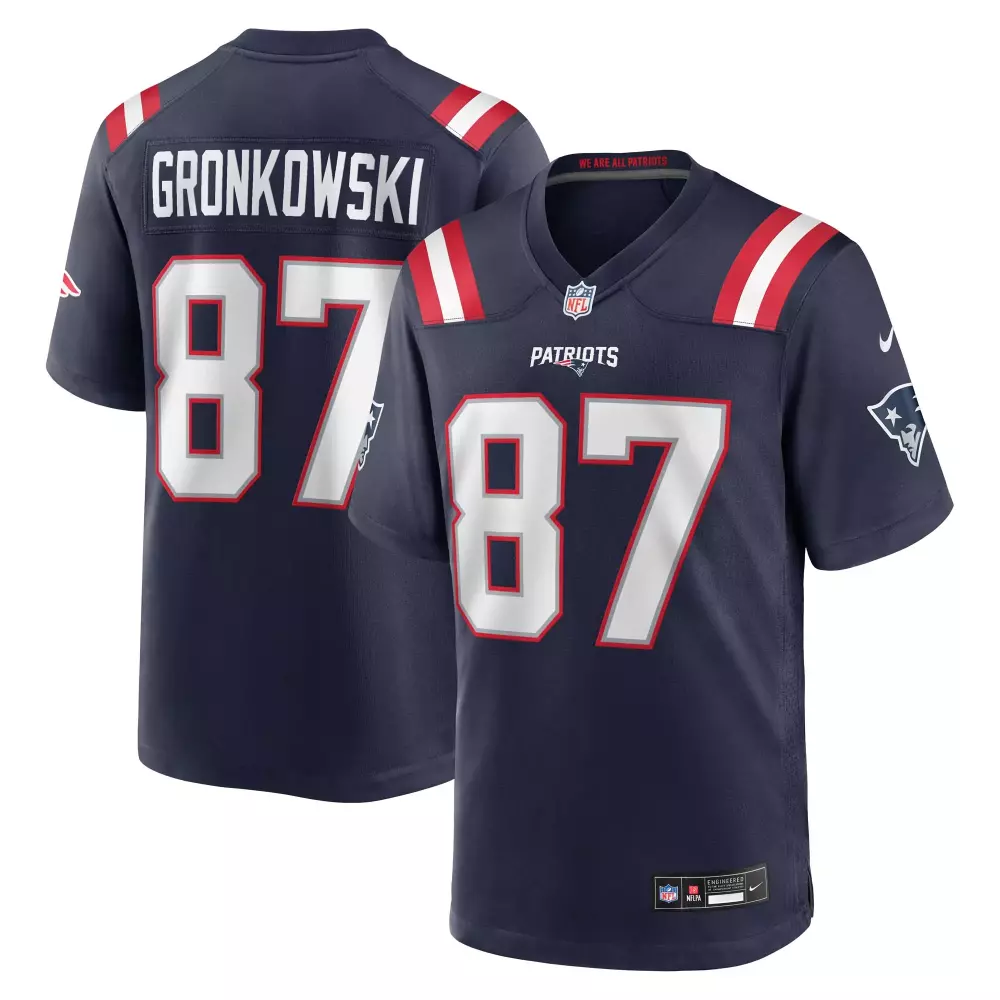 julian ashby new england patriots nike team game jersey navy;khyiris tonga new england patriots nike team game jersey navy;marcus bryant new england patriots nike team game jersey navy;morgan moses new england patriots nike team game jersey navy;rob gronkowski new england patriots nike team retired player game jersey navy