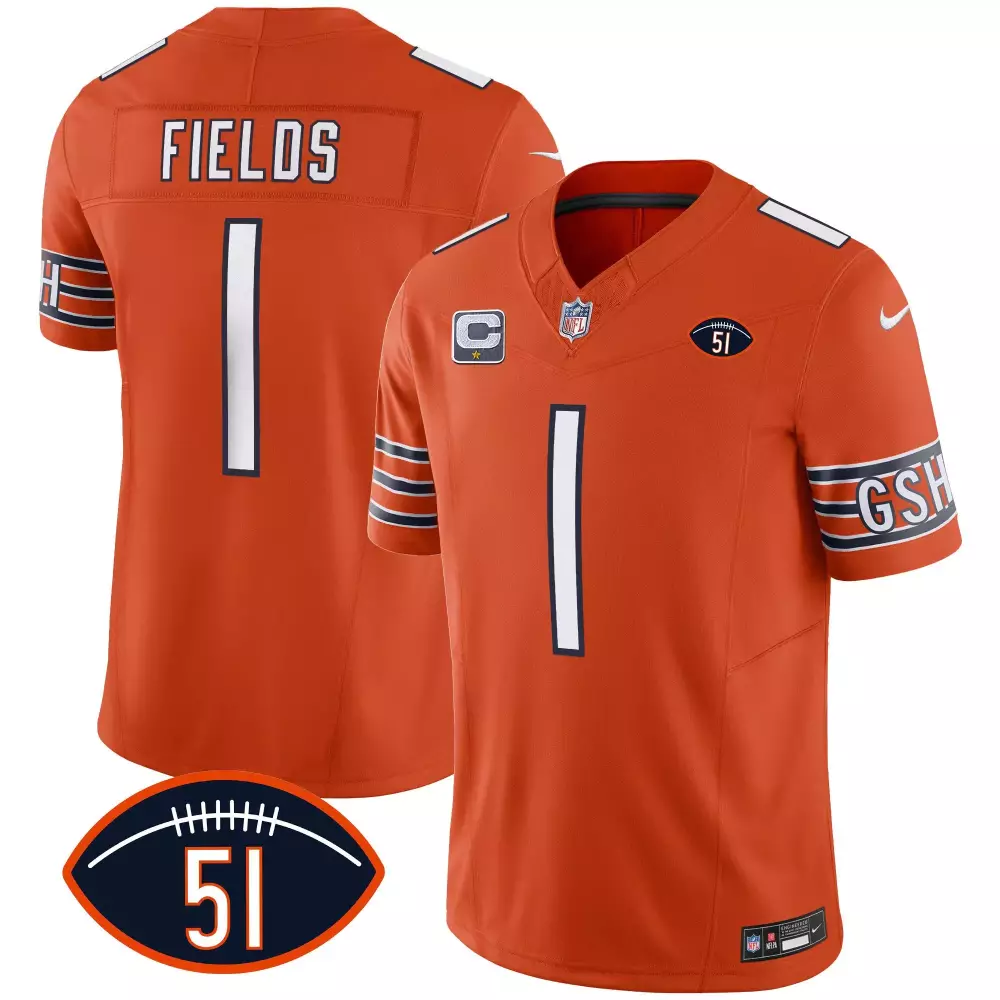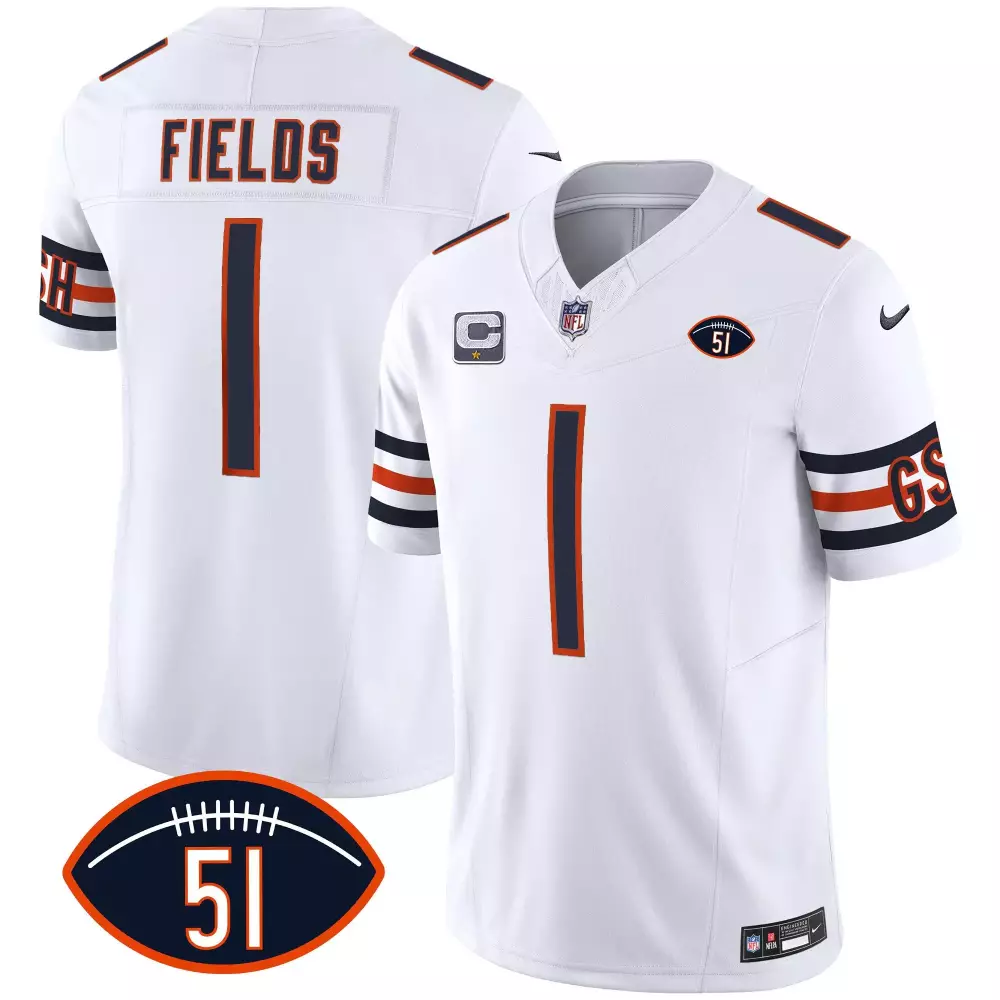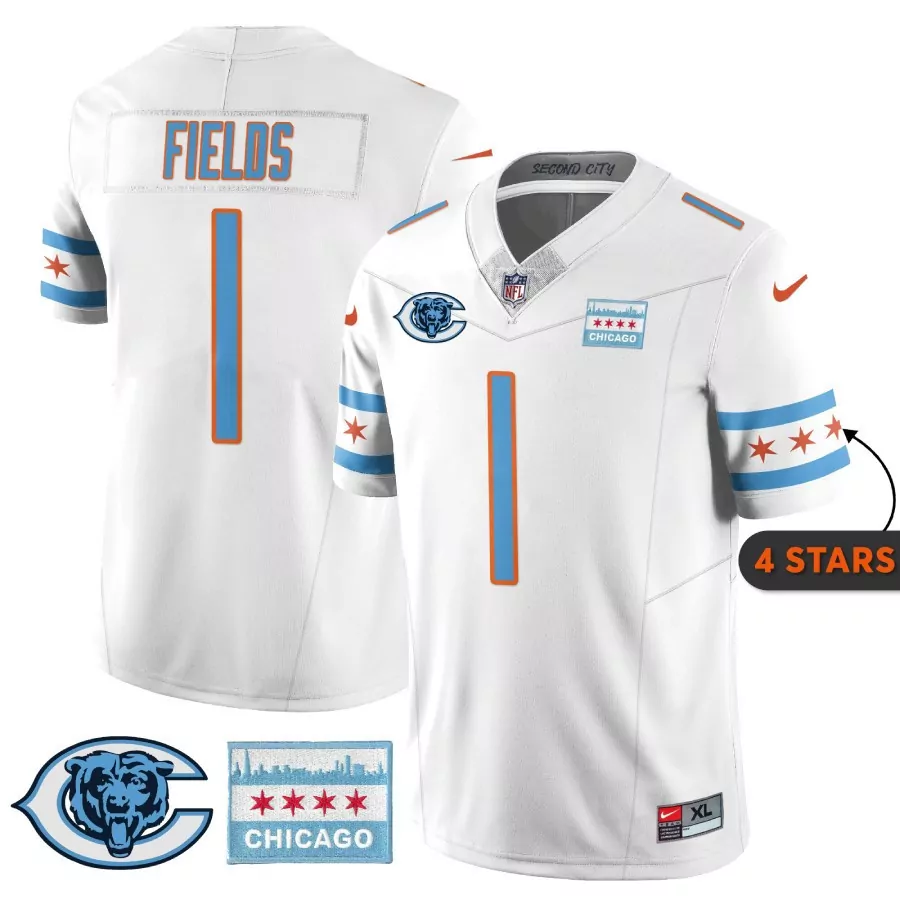 Justin Fields Chicago Bears City Edition Jersey | White Chicago Flag | Stitched Replica Fan Gear | For Men, Women & Youth;Justin Fields Chicago Bears City Edition Jersey | White Chicago Flag | Stitched Replica Fan Gear | For Men, Women & Youth;Justin Fields Chicago Bears Dick Butkus Patch GSH Vapor Jersey | Orange Stitched Style | Limited Edition Fan Gear | For Men, Women & Youth;Justin Fields Chicago Bears Dick Butkus Patch GSH Vapor Jersey | White | Stitched Limited Edition Fan Gear | For Men, Women & Youth;Justin Fields Chicago Bears Game Jersey | White | Stitched Replica Fan Gear for Youth | For Men, Women & Youth