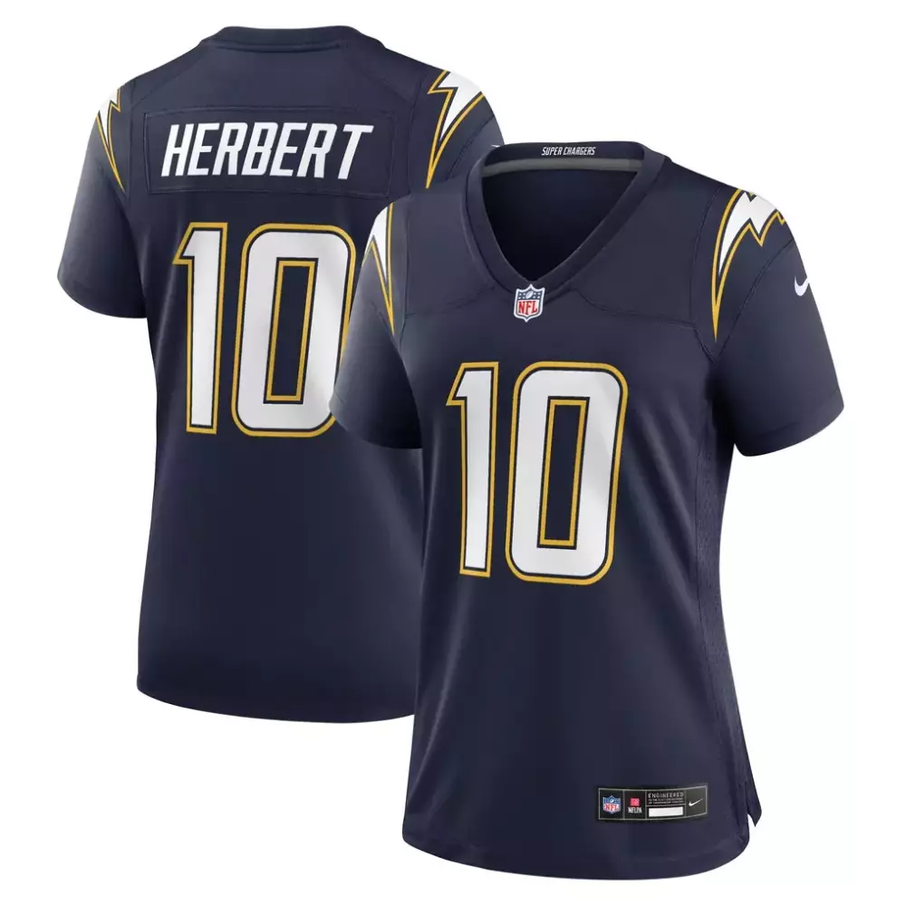 Justin Herbert Los Angeles Chargers Women’s Gold Alternate Game Jersey | Fashion Fan Gear | For Women & Youth;Justin Herbert Los Angeles Chargers Women’s Gold Alternate Legend Performance Top | Stylish Fan Gear | For Women;Justin Herbert Los Angeles Chargers Women’s Gray Atmosphere Fashion Game Jersey | Stylish Fan Gear | For Women;Justin Herbert Los Angeles Chargers Women’s Navy Alternate Game Jersey | Fashion Fan Gear | For Women;Justin Herbert Los Angeles Chargers Women’s Navy Alternate Super Chargers Game Jersey | Stylish Fan Gear | For Women