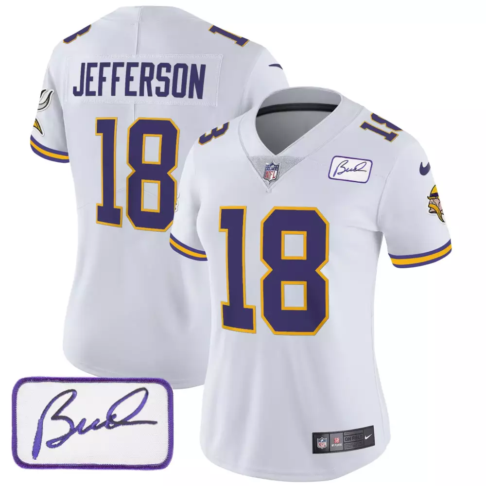 Justin Jefferson Minnesota Vikings 2024 Vapor Limited Jersey V2 | White Stitched Fan Gear | For Women & Youth;Justin Jefferson Minnesota Vikings Bud Grant Patch Classic Limited Jersey | White Stitched Fan Gear | For Women & Youth;Justin Jefferson Minnesota Vikings Bud Grant Patch Classic Limited Jersey | White Stitched Fan Gear | For Youth;Justin Jefferson Minnesota Vikings Bud Grant Patch Classic Limited Jersey V3 | White Stitched Fan Gear | For Women & Youth;Justin Jefferson Minnesota Vikings Bud Grant Patch Classic Limited Jersey V5 | White Stitched Fan Gear | For Women & Youth
