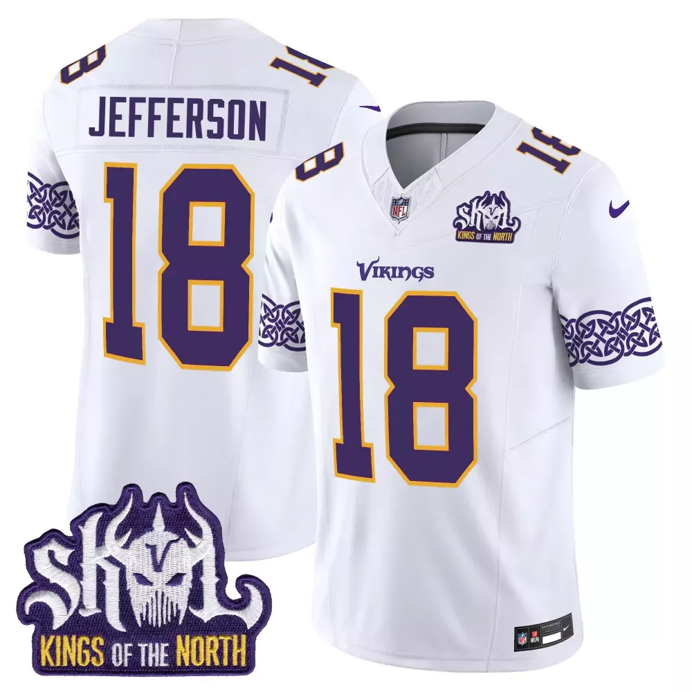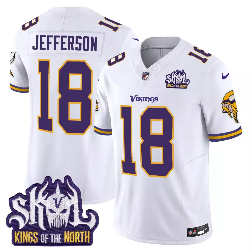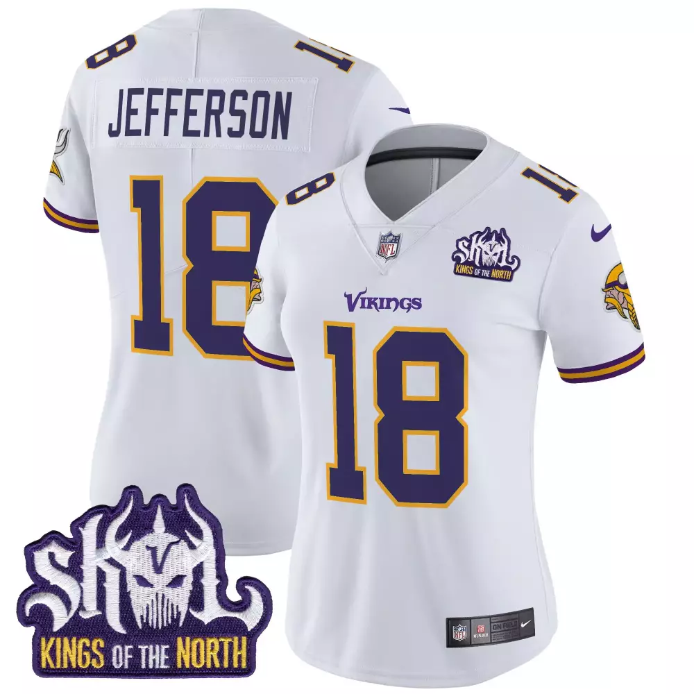 Justin Jefferson Minnesota Vikings King of the North Patch Throwback Game Jersey | White Stitched Fan Gear | For Men, Women & Youth;Justin Jefferson Minnesota Vikings King of the North Patch Throwback Vapor Limited Jersey | White Stitched Fan Gear | For Men, Women & Youth;Justin Jefferson Minnesota Vikings King of the North Patch Throwback Vapor Limited Jersey | White Stitched Fan Gear | For Women & Youth;Justin Jefferson Minnesota Vikings King of the North Patch Throwback Vapor Limited Jersey V2 | White Stitched Fan Gear | For Men, Women & Youth;Justin Jefferson Minnesota Vikings King of the North Women’s Throwback Vapor Limited Jersey | Purple Alternate | Stitched | Fan Gear for Game Day | For Men, Women & Youth