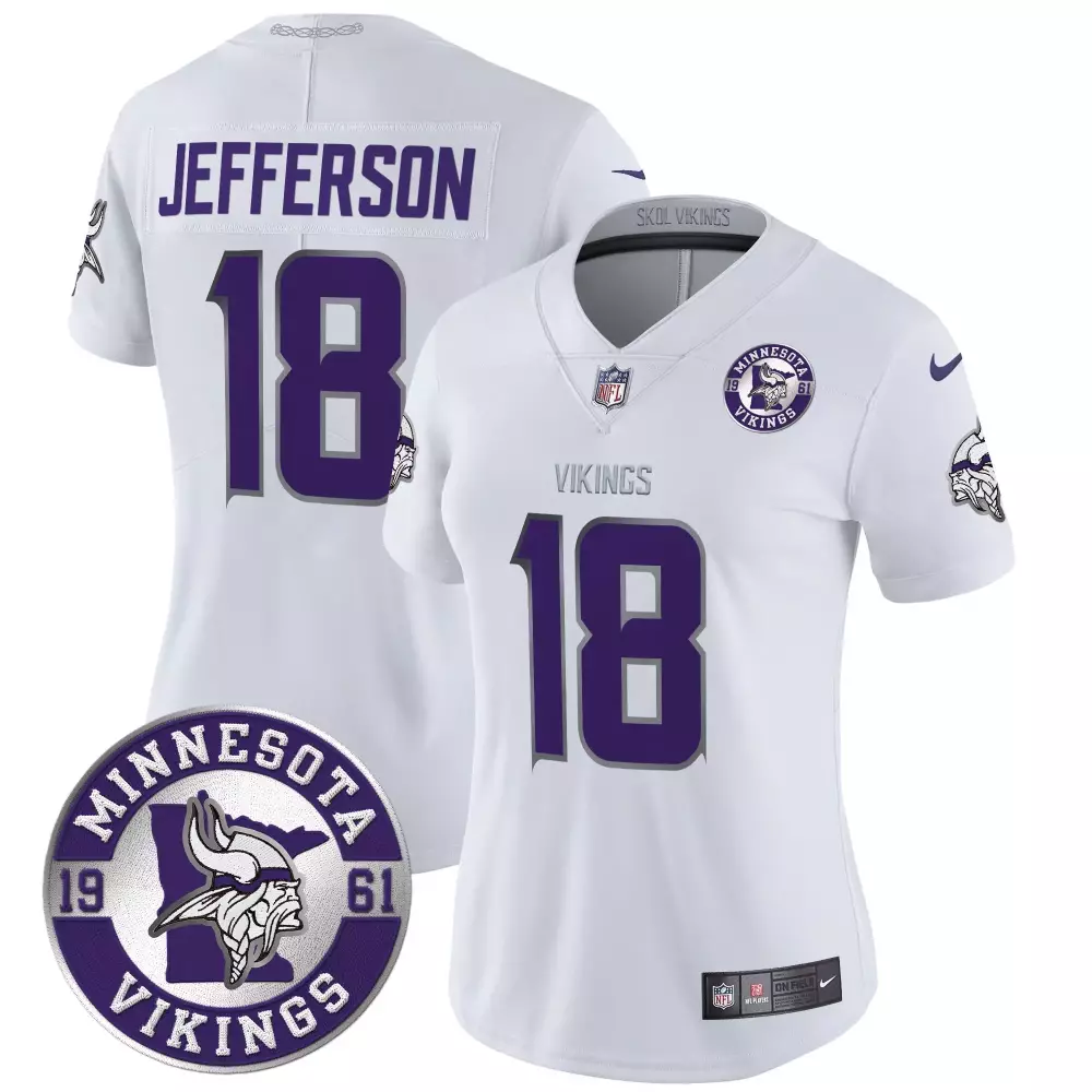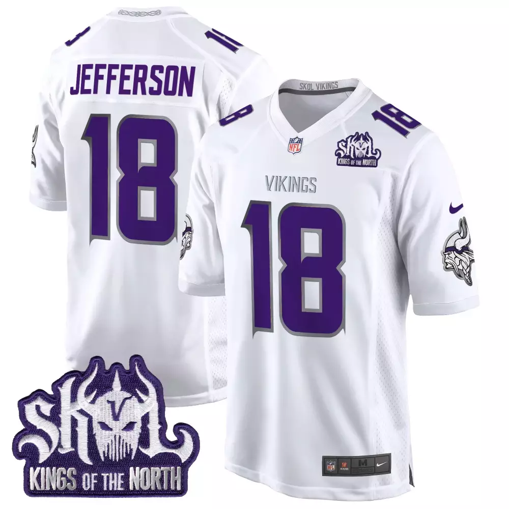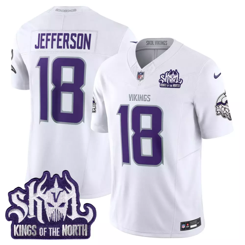 Justin Jefferson Minnesota Vikings Winter Warrior 2024 Vapor Limited Jersey V2 | White Stitched Fan Gear | For Men, Women & Youth;Justin Jefferson Minnesota Vikings Winter Warrior 2024 Vapor Limited Jersey V2 | White Stitched Fan Gear | For Women;Justin Jefferson Minnesota Vikings Winter Warrior King of the North Patch Game Jersey | White Stitched Fan Gear | For Men, Women & Youth;Justin Jefferson Minnesota Vikings Winter Warrior King of the North Patch Throwback Game Jersey | White Stitched Fan Gear | For Men, Women & Youth;Justin Jefferson Minnesota Vikings Winter Warrior King of the North Patch Throwback Vapor Limited Jersey | White Stitched Fan Gear | For Men, Women & Youth