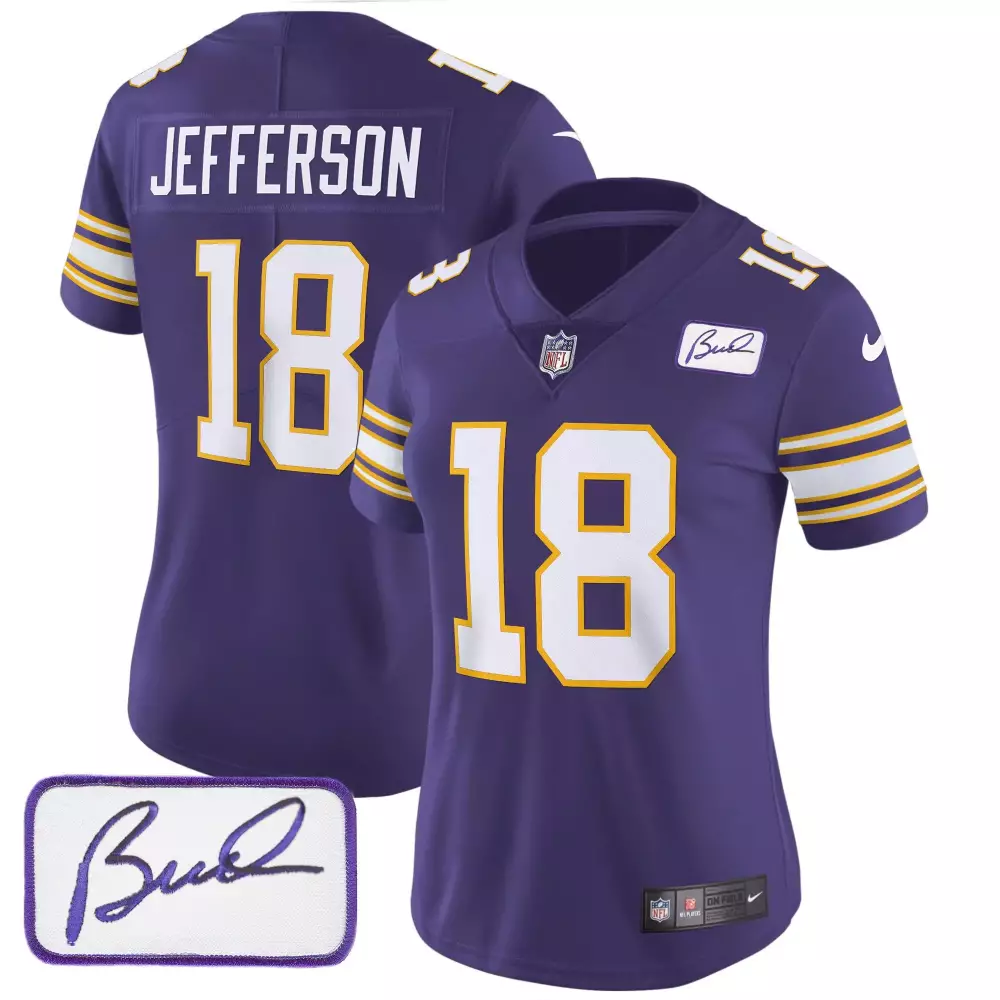 Justin Jefferson Minnesota Vikings Youth White Vapor Elite Jersey | Stitched Fan Gear | For Men, Women & Youth;Justin Jefferson Purple Classic Limited Jersey | Bud Grant Patch | Minnesota Vikings | All Stitched | For Men, Women & Youth;Justin Jefferson Purple Classic Limited Jersey V3 | Bud Grant Patch | Minnesota Vikings | All Stitched | For Men, Women & Youth;Justin Jefferson Purple Classic Limited Jersey V5 | Bud Grant Patch | Minnesota Vikings | All Stitched | For Men, Women & Youth;Justin Jefferson Purple Player Jersey | Minnesota Vikings Fan Gear | For Men, Women & Youth