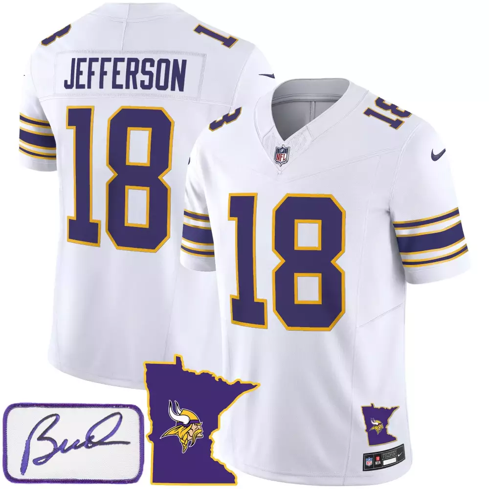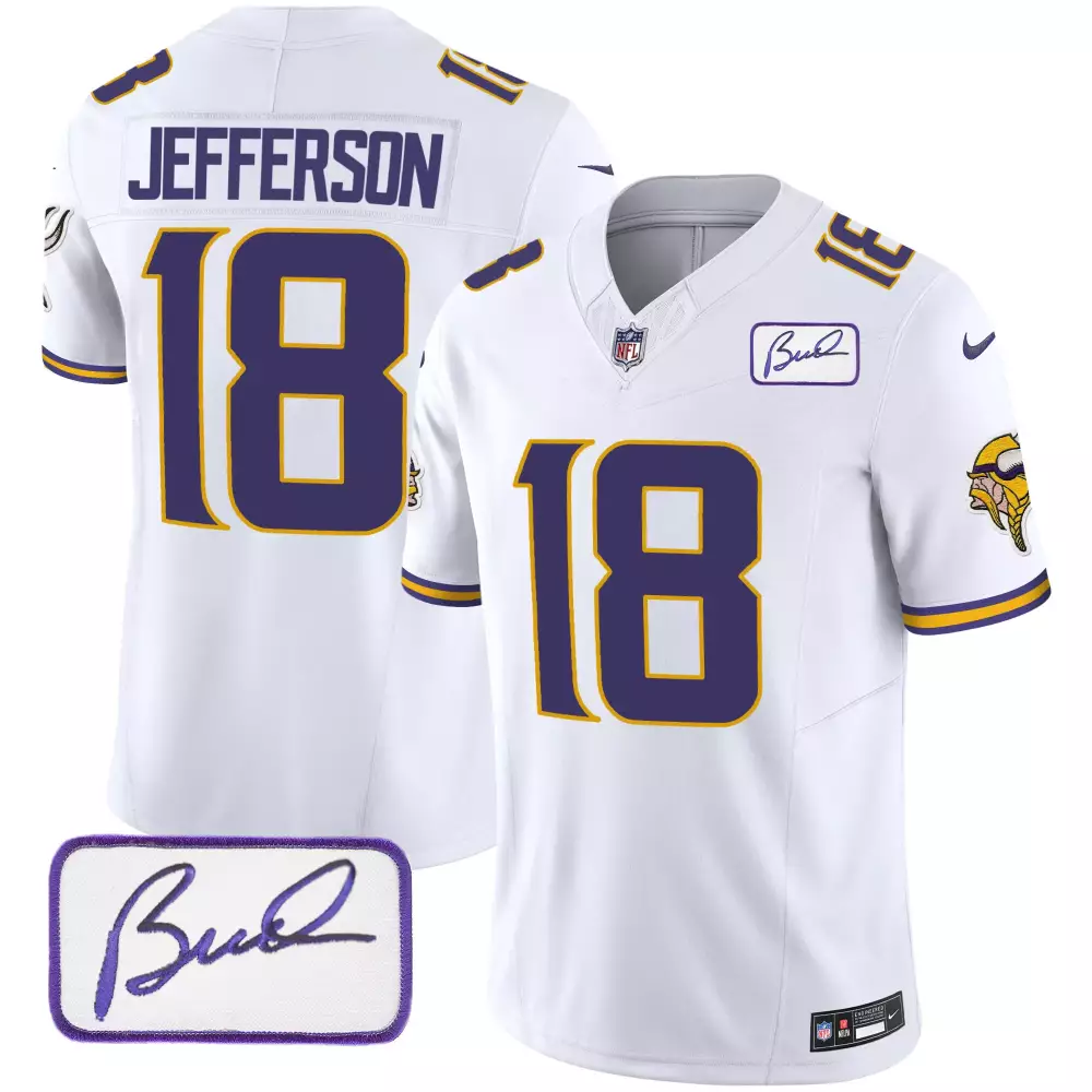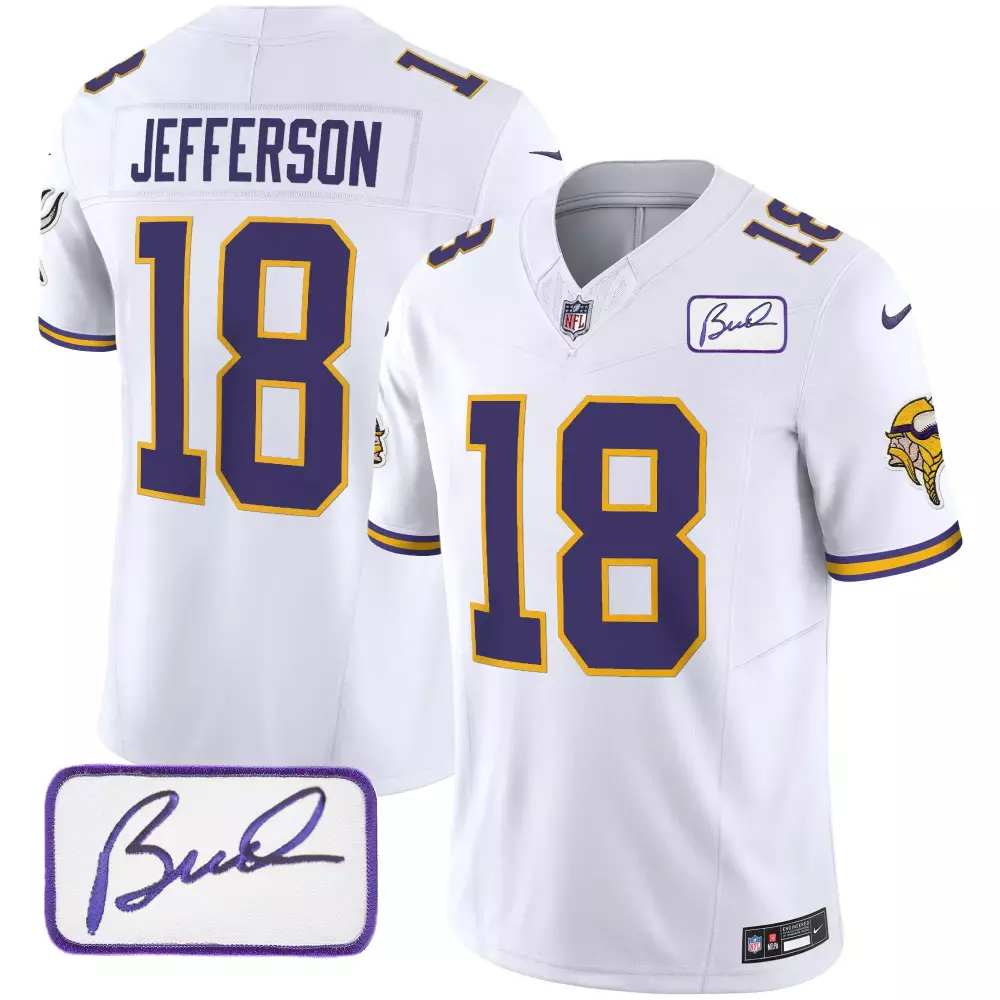 Justin Jefferson White Men’s Classic Limited Jersey | Bud Grant Patch | Minnesota Vikings | All Stitched | For Men, Women & Youth