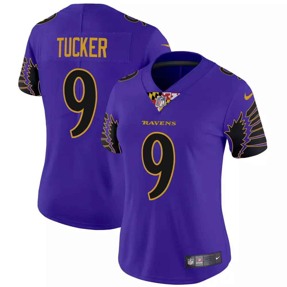 Justin Tucker Baltimore Ravens Women’s Purple Limited Jersey | Maryland Flag | Stitched | For Men, Women & Youth