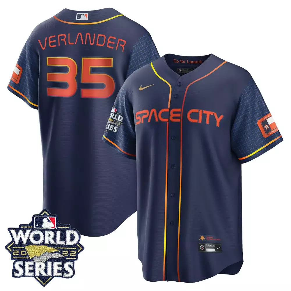 Justin Verlander Cool Base Youths Houston Astros Space City 2022 World Series Jersey | All Stitched | For Youth | Trendy Fan Gear