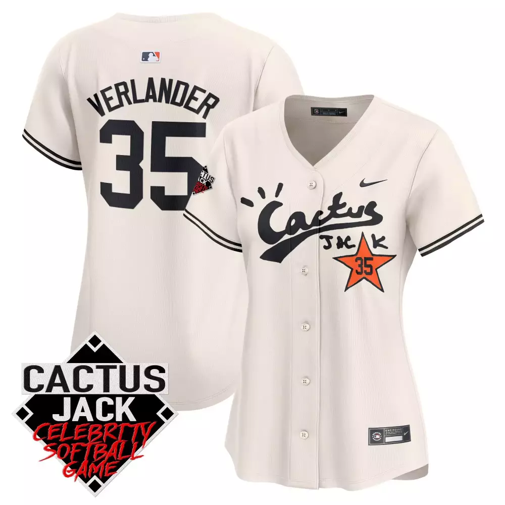 Justin Verlander Houston Astros Cream Vapor Premier Limited Jersey | Cactus Jack Celebrity Softball Game Patch | Women’s Edition for Men, Women & Youth