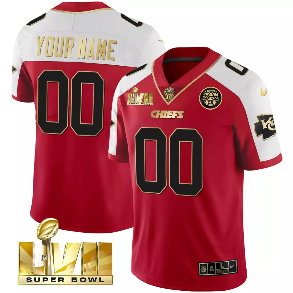 Kansas City Chiefs Super Bowl Custom Name & Number Jersey | White Gold Stitched Vapor Style | Fan Gear for All | For Men, Women & Youth;Kansas City Chiefs Super Bowl Custom Name & Number Red Alternate Youth Jersey | Vapor Limited Edition | For Men, Women & Youth;Kansas City Chiefs Super Bowl Custom Name & Number Youth Jersey | White Gold Stitched Vapor Style | Fan Gear for All | For Men, Women & Youth;Kansas City Chiefs Super Bowl Custom Name 00 Women’s Jersey | All Stitched Style | 2023 Fan Gear for All;Kansas City Chiefs Super Bowl Custom Name Jersey | All Stitched Red | Game Day Outfit | For Men, Women & Youth