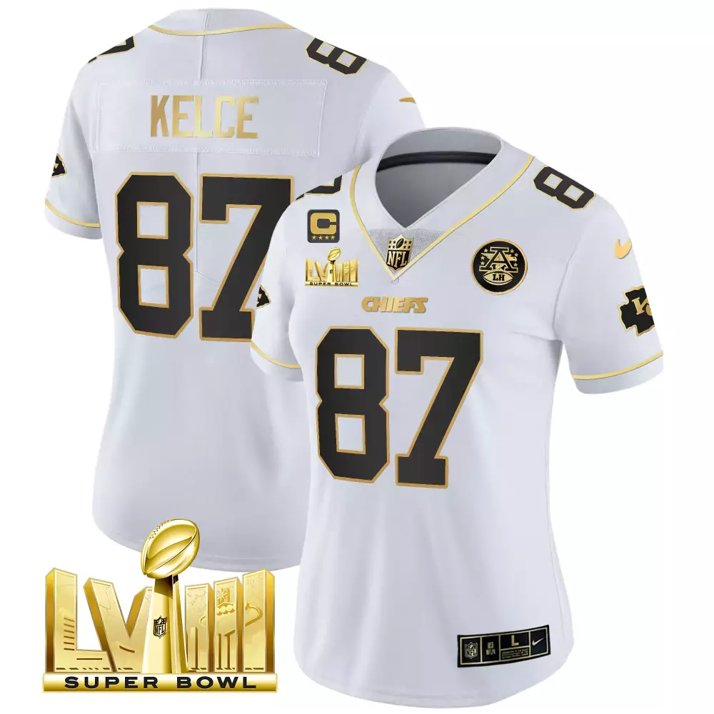 Kelce 87 Kansas City Chiefs White Stitched Jersey | Super Bowl LVIII Name Patch Women’s Style | For All Fans