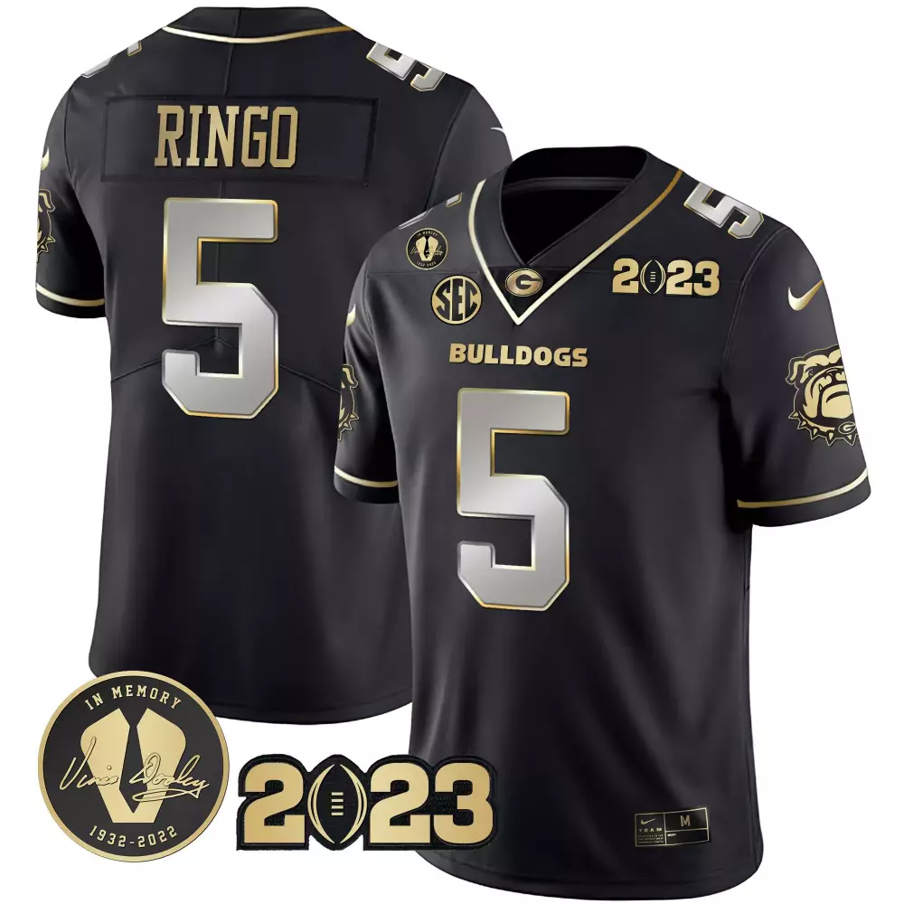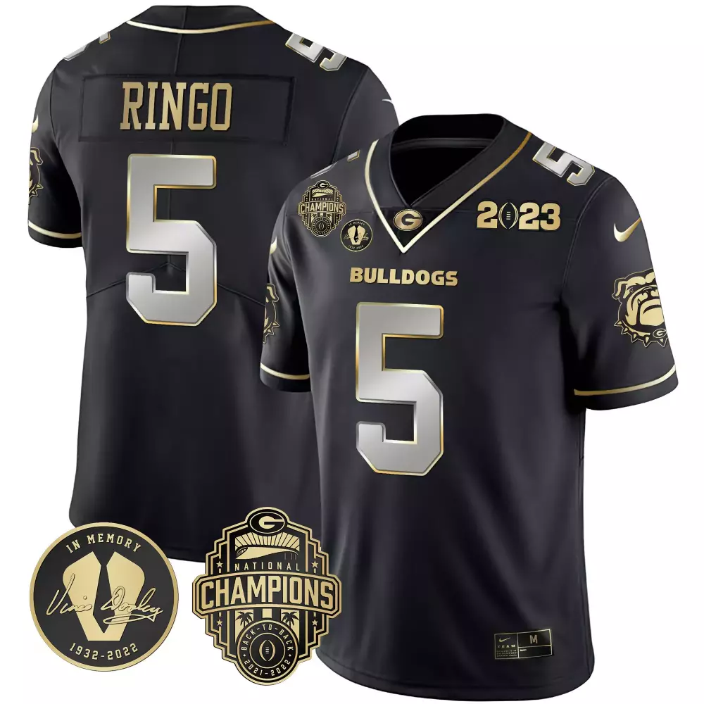 Kelee Ringo Georgia Bulldogs 2023 Champions Black Gold Trim Jersey | Stitched Fan Gear | For Men, Women & Youth